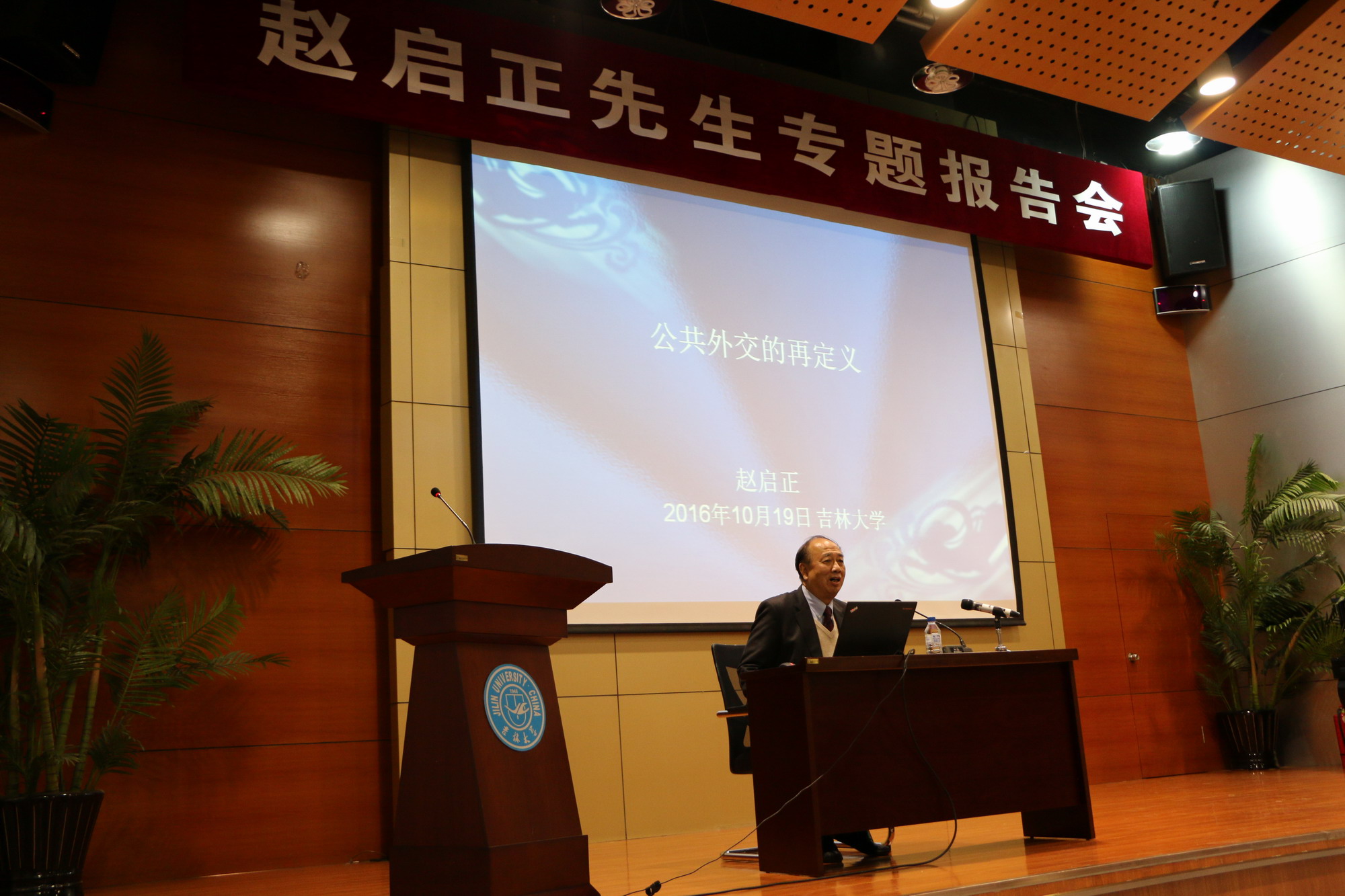 应吉林大学邀请,中国人民大学新闻学院院长,原国务院新闻办公室主任,第十一届全国政协外事委员会主任赵启正先生10月19日下午到访吉林大学,并为学校师生作学术报告。李元元校长会见了赵启正先生一行,对赵启正的到访表示热烈欢迎,并就当前国际形势、公共外交在“一带一路”战略中的重要作用和公共外交的人才培养等问题与赵先生进行了热烈的讨论。李元元高度赞扬赵启正为中国公共外交事业所做出的卓越贡献,期待他为熟女