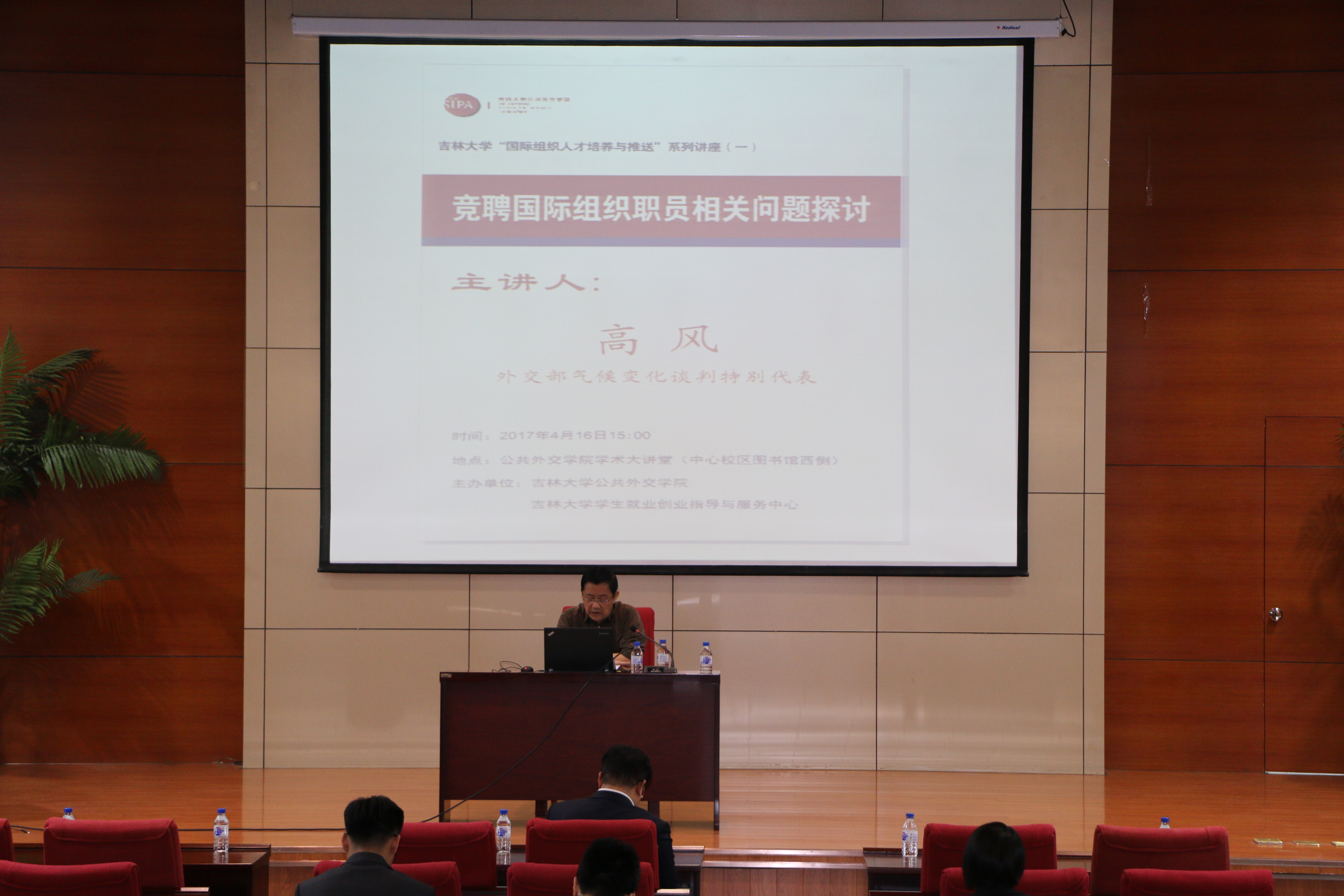 、学生就业创业指导与服务中心邀请,外交部气候变化谈判特别代表高风先生于4月16日来到我校,作为吉林大学“国际组织人才培养与推送”系列讲座第一讲的主讲嘉宾做专题报告。常务副校长陈岗教授会见了高风先生,对其再次到访我校表示热烈欢迎,并就国际组织人才培养工作进行了讨论,希望高先生能更多地与我校在国际组织人才培养与推送方面开展交流与合作。