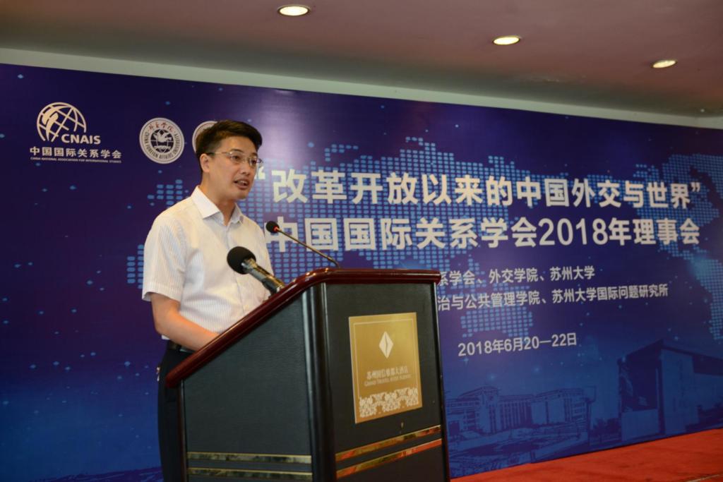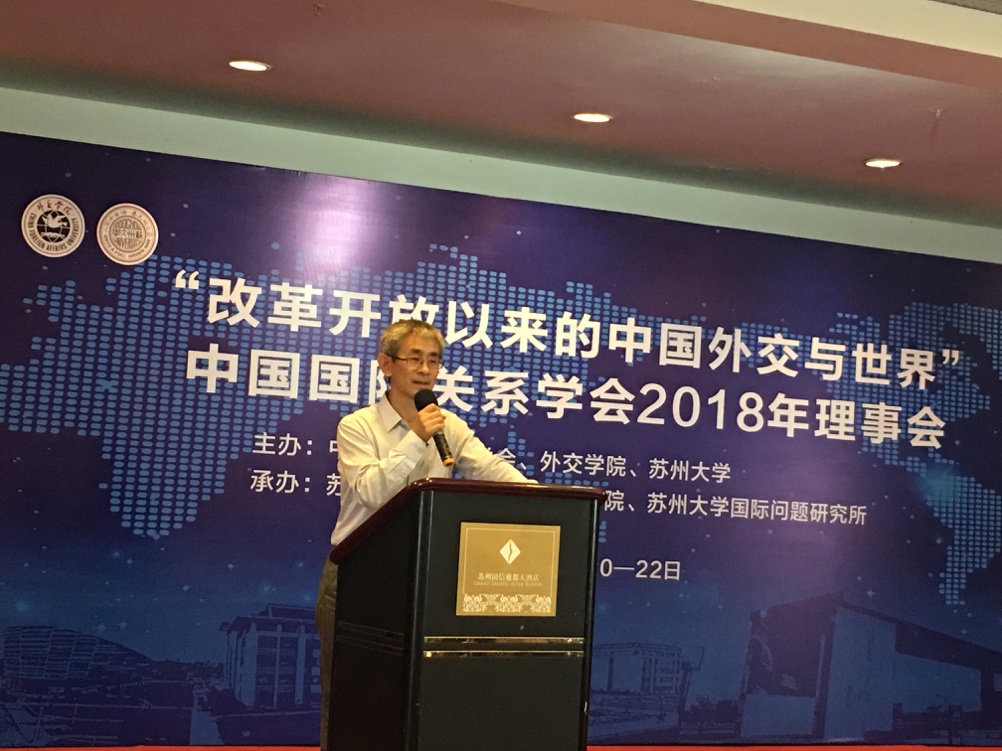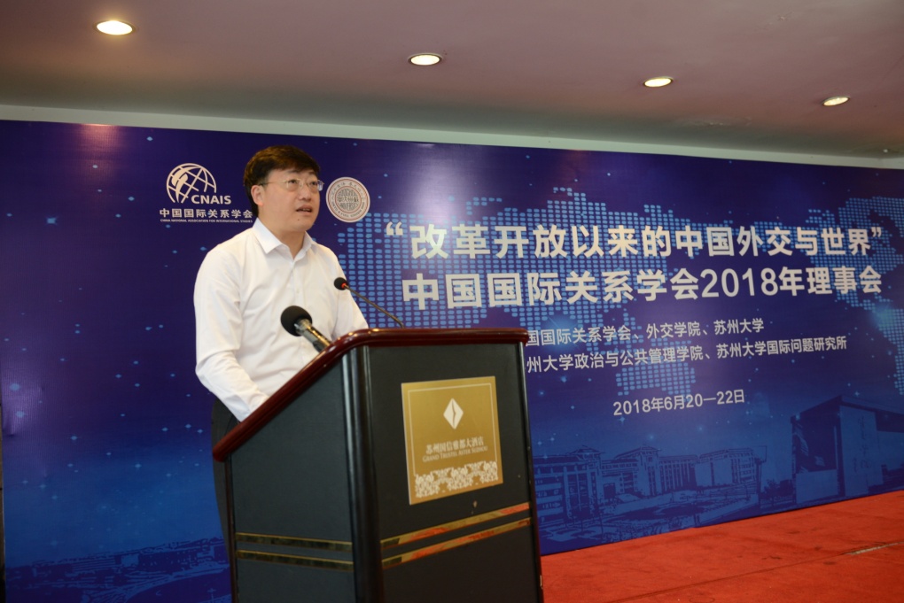 2018年6月21日,以“改革开放以来的中国外交与世界”为主题的2018年中国国际关系学会理事会在苏州召开。本次理事会由中国国际关系学会与学会理事单位苏州大学共同主办,苏州大学政治与公共管理学院和苏州大学国际问题研究所承办。来自外交学院、中共中央党校、吉林大学、复旦大学、同济大学、中山大学、上海外国语大学、苏州大学、现代国际问题研究院等会员单位的80余位专家学者及学生代表参加了会议。