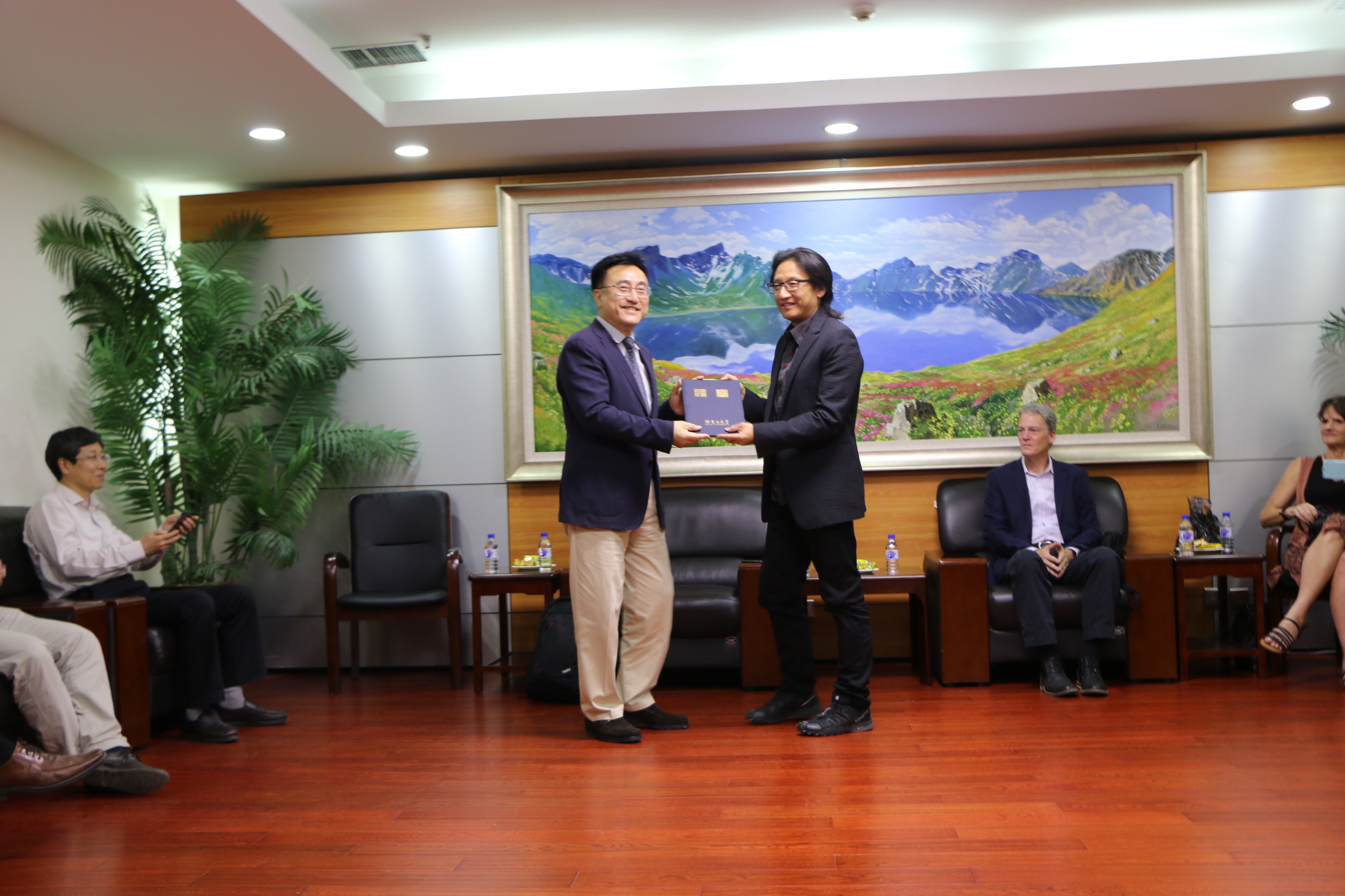 孙兴杰副院长与黄海波先生进行了会谈。刘德斌院长对黄海波先生在媒体和公共外交领域的成就给予高度评价,并向其颁发了“熟女