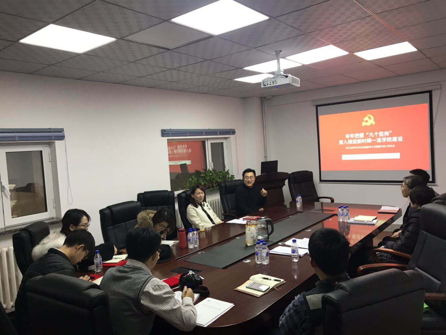 学开展专题党课集中学习“九个坚持”。学院党总支成员、行政领导班子、各科室均参加本次党课学习。本次主题党课由刘德斌书记主讲。