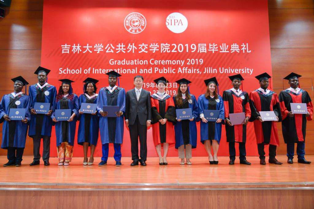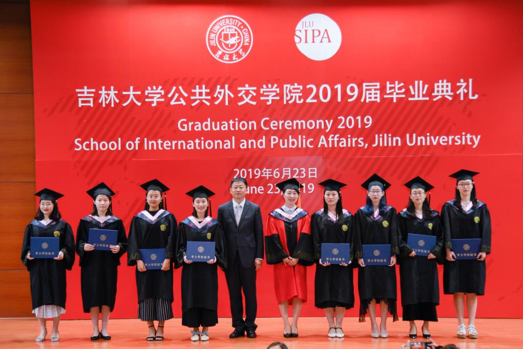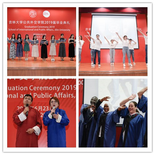 毕业典礼在学生录制的祝福视频中拉开帷幕。视频汇集了学院教师和在校学生对学院2019届全体毕业生的殷切希望和衷心祝福。视频播毕,院长肖晞教授首先为毕业典礼致辞。她以《中国梦 吉大情 学子魂》为题,指出中国铸梦,所以繁荣富强;吉大有情,因而励志图强;学子塑魂,才能奋发坚强。她鼓励同学们始终保持启程时奋斗的初心,让奋斗贯穿人生的始终。她祝愿同学们能用珍惜昨天的态度,放飞今天的梦想,书写明天最璀璨的华章。 接下来,她以“SIPA, The Home We Never Say Goodbye”为题,和留学生们分享了中国、大学、学院对他们意味着什么,期待他们回国后能够传播中国声音、讲述中国故事,向世界描绘一个真实、立体、全面的中国。她深情地邀请他们常回来,学院永远是每一位留学生温暖的家。
