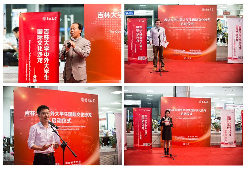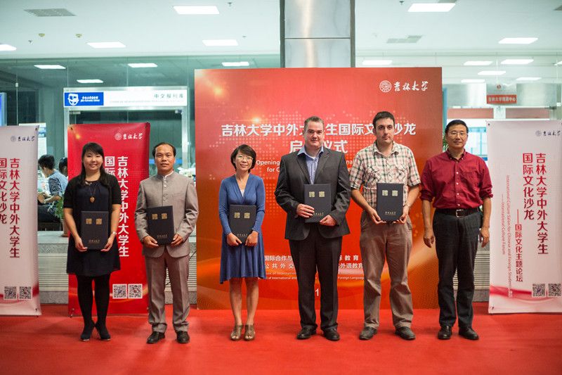 /国际教育学院和公共外语教育学院共同组织开展的“吉林大学中外大学生国际文化沙龙”启动仪式于9月14日在学校中心校区图书馆一楼大厅隆重举行。副校长陈岗代表学校致辞并为国际文化沙龙指导教师颁发聘书。党委宣传部、学生工作部、研究生管理处、教务处、国际合作与交流处、校团委、图书馆、熟女