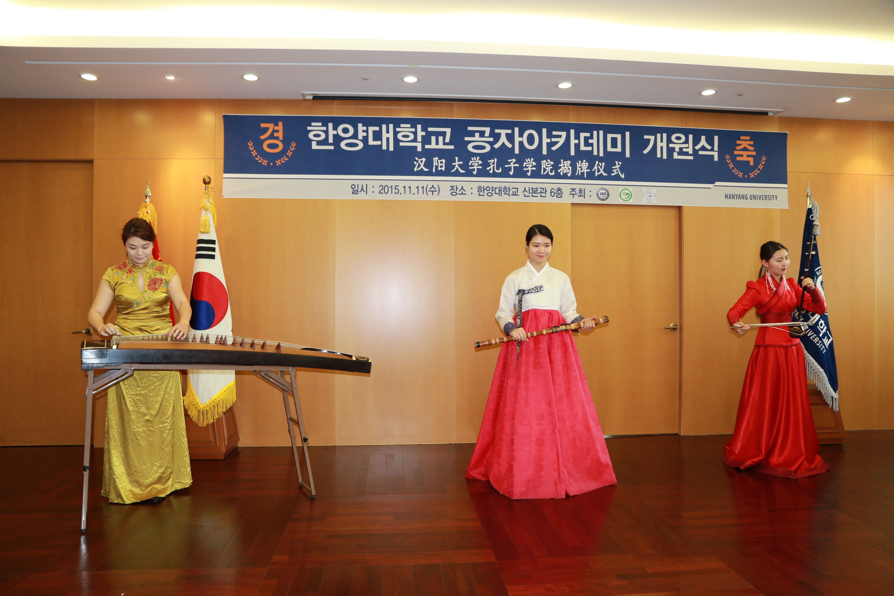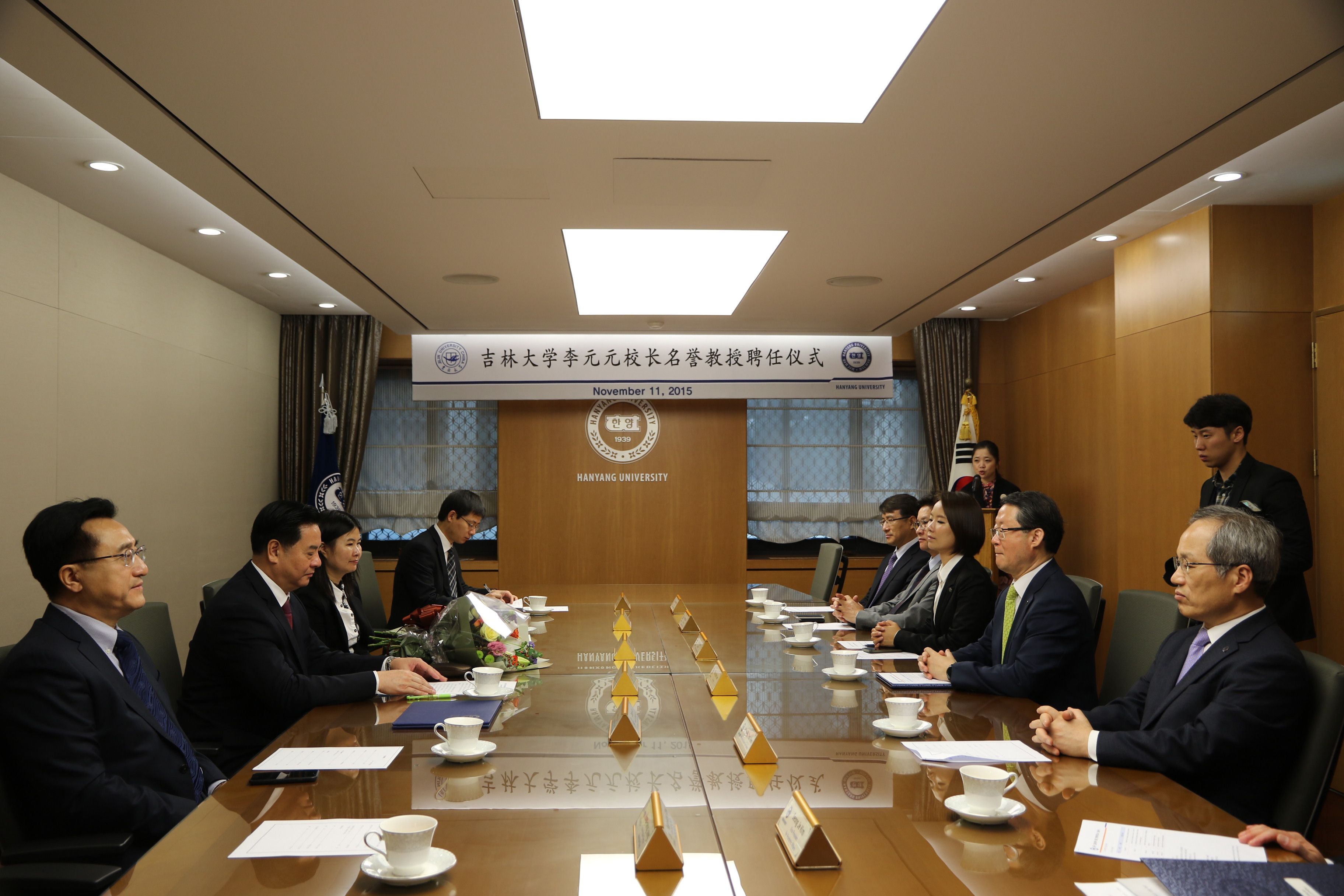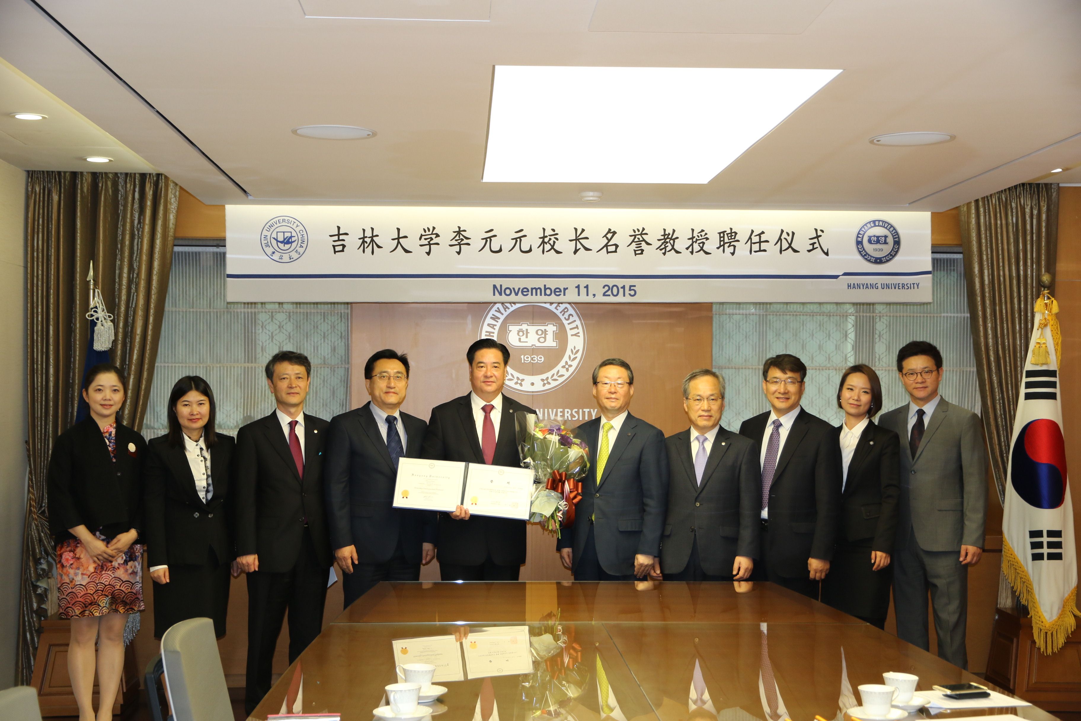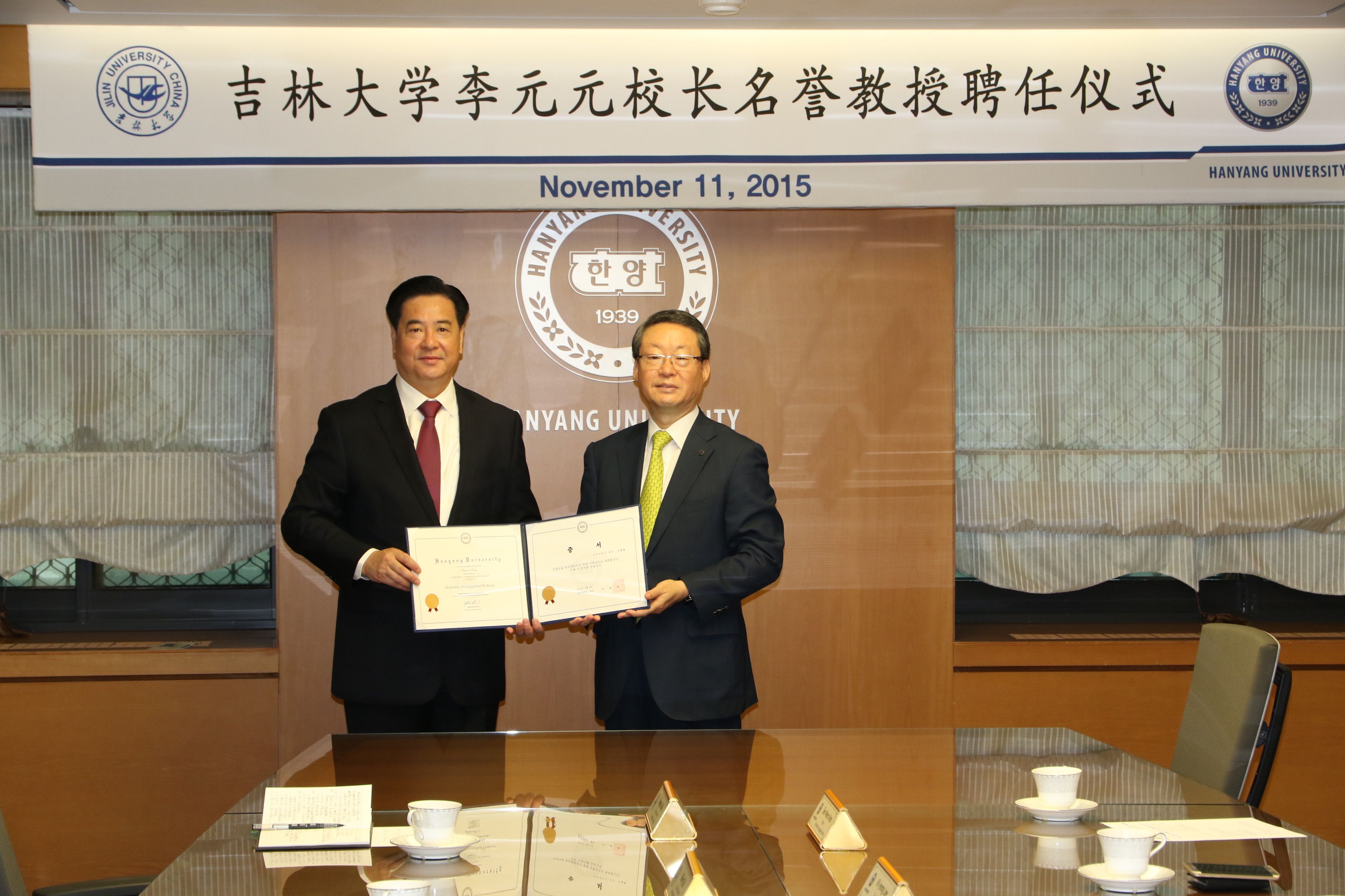 2015年11月11日,正在韩国访问的吉林大学校长李元元受聘汉阳大学名誉教授,并和汉阳大学校长李永茂等一起为两校合作建立的孔子学院揭牌。