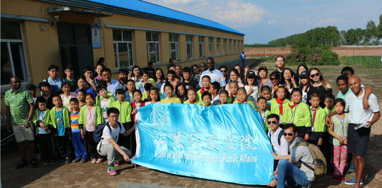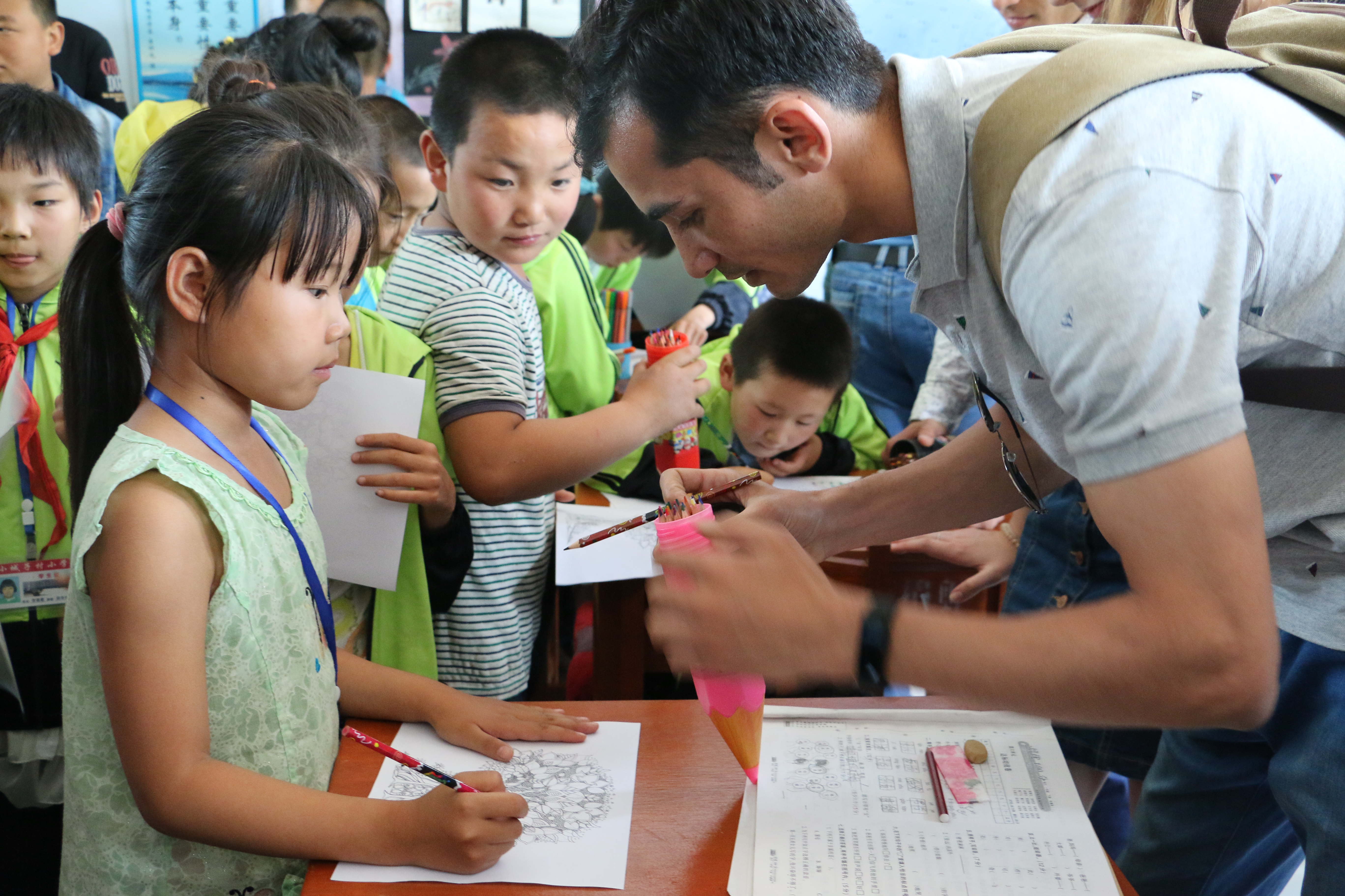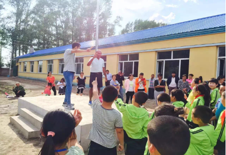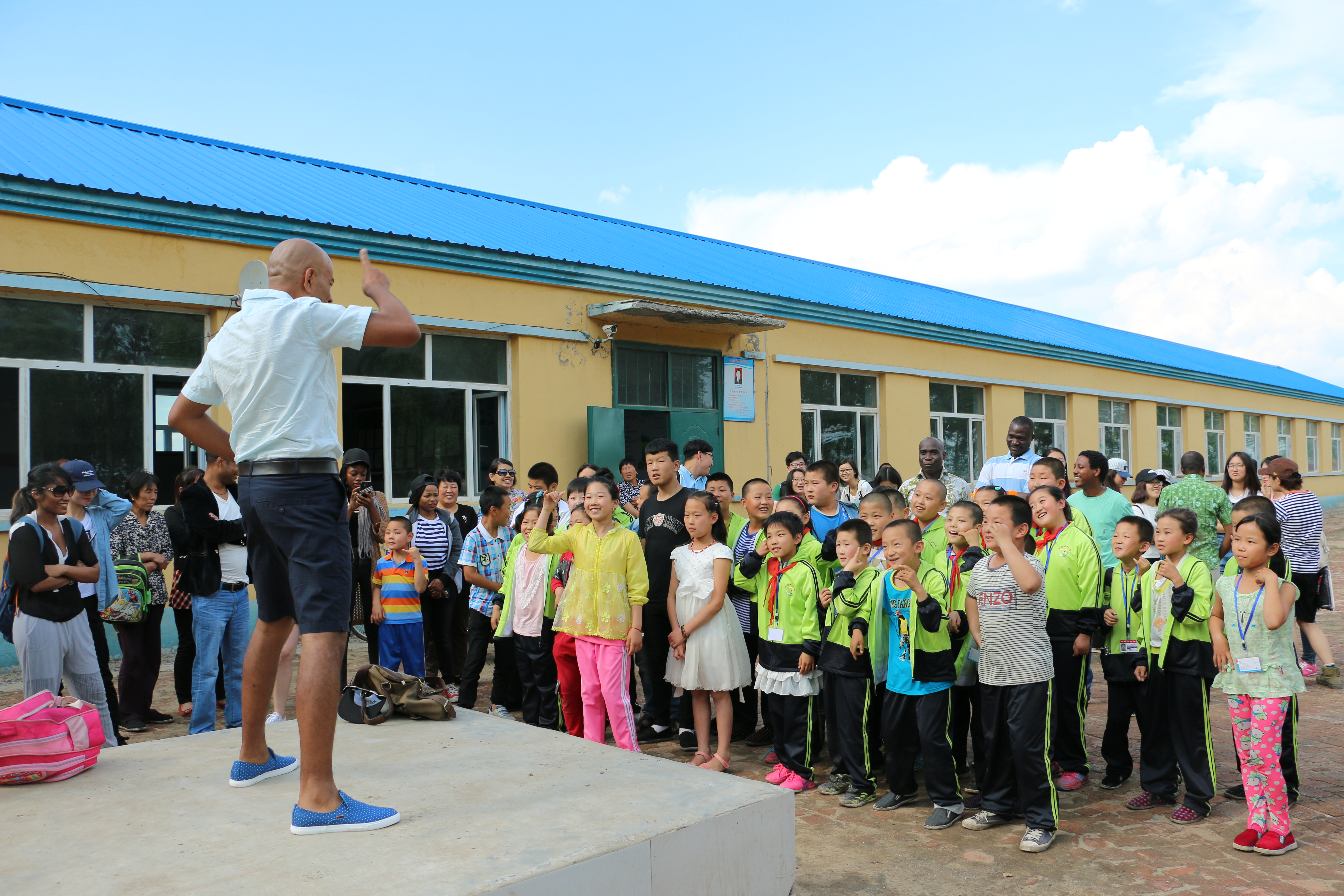 接下来,留学生们组织小朋友走到室外操场进行活动。留学生代表即兴教小朋友们英文歌曲,在留学生热情的带动下,从“Five Monkeys”, 拍手歌,到具有加勒比风情的舞蹈,小朋友们都跟着手舞足蹈,开心地笑着。小城子村小学的教职员工也表达了对熟女