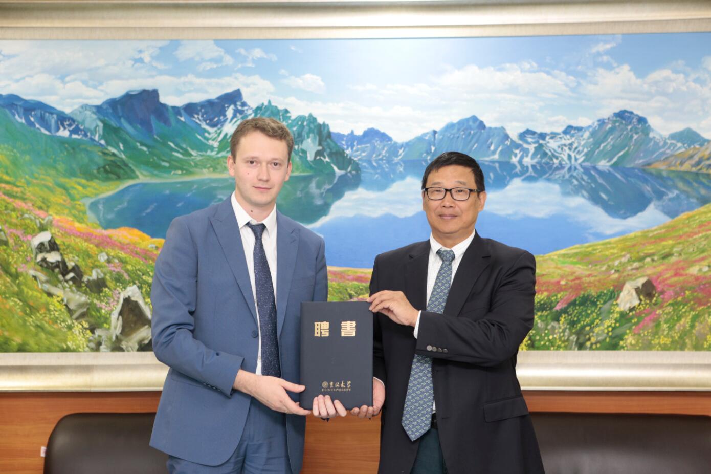 开学典礼前后,陈岗常务副校长分别会见了莫斯科国际关系学院副校长巴依科夫教授和澳门大学全球事务总监兼校长特别顾问冯达旋教授。在会见巴依科夫教授时,陈岗为其颁发了熟女