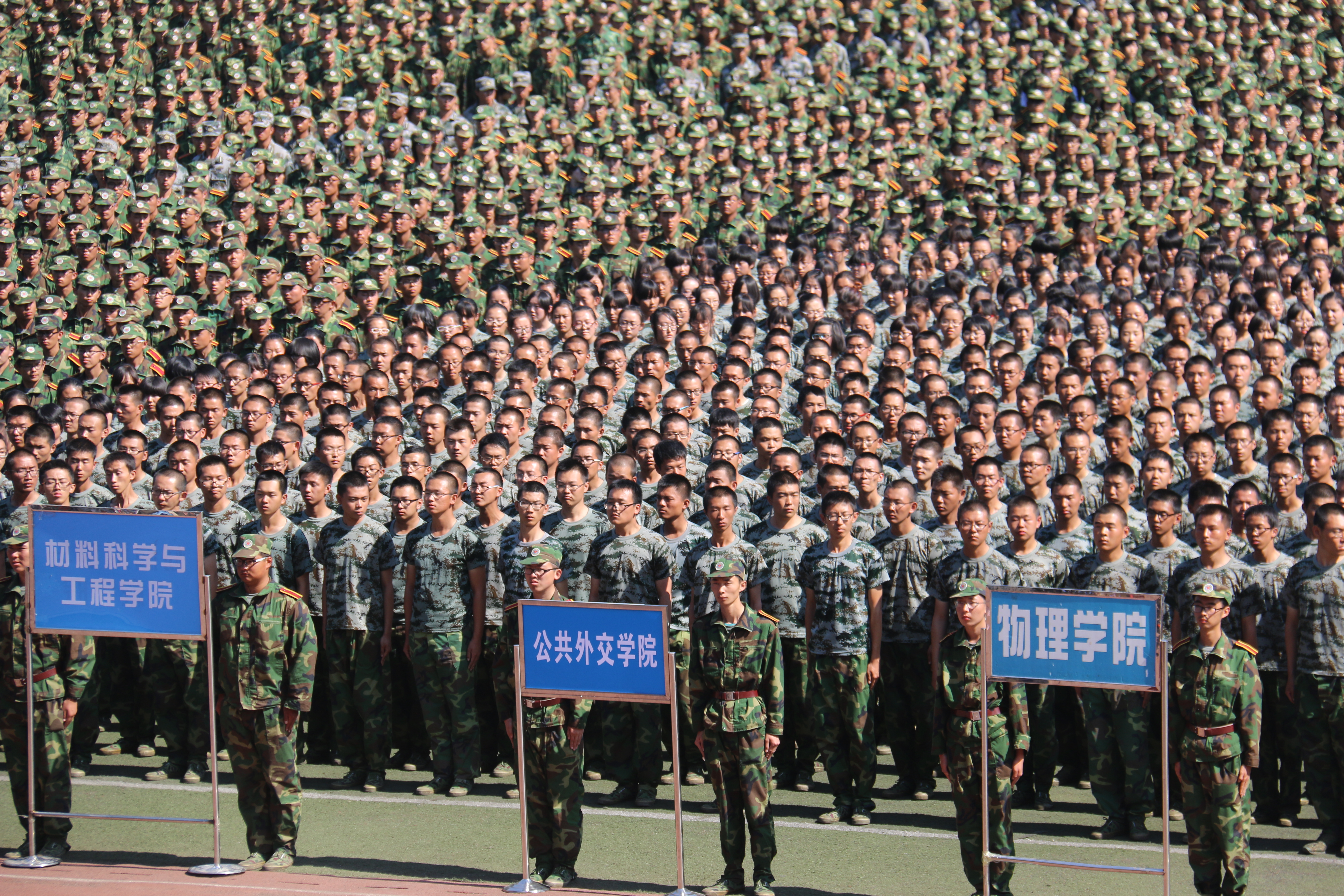 首届新生用他们嘹亮有力的口号、整齐划一的步伐、气势恢宏的军体拳表演汇报了为期三周的军训成果。军训中,同学们高度的集体荣誉感和较强的自我约束力,团结互助、勇于拼搏、轻伤不下训练场,展现了熟女