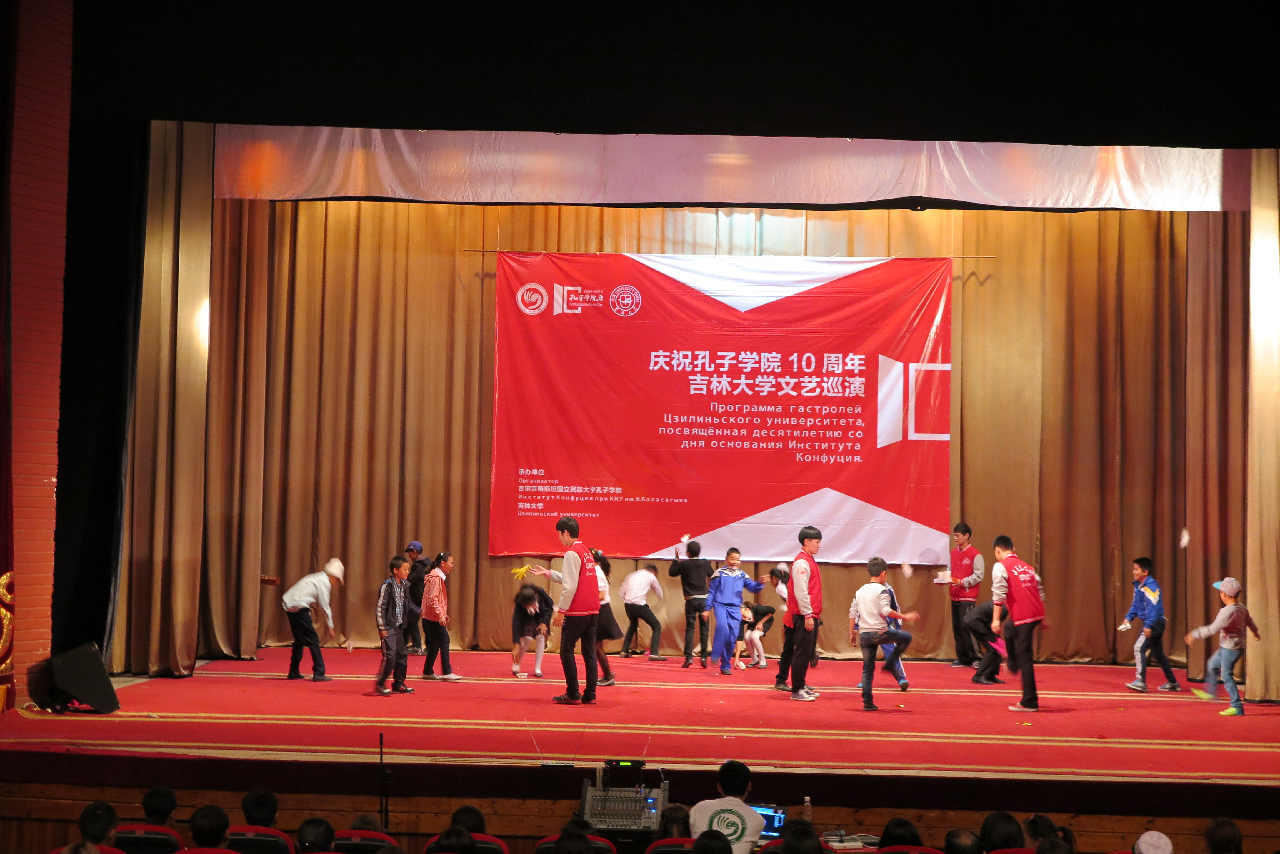 相知无远近,万里尚为邻。中国和吉尔吉斯斯坦互为邻我,古有上千年的丝绸之路让中吉两国交流融合,今有桥梁般的孔子学院,让两国青年沟通了解。时值“孔子学院十周年”庆典之际,吉林大学巡演团将中国传统的文艺表演带到这里,希望让更多的海外朋友们了解孔子学院、感受汉语文化、领略中华风采、促进交流往来。