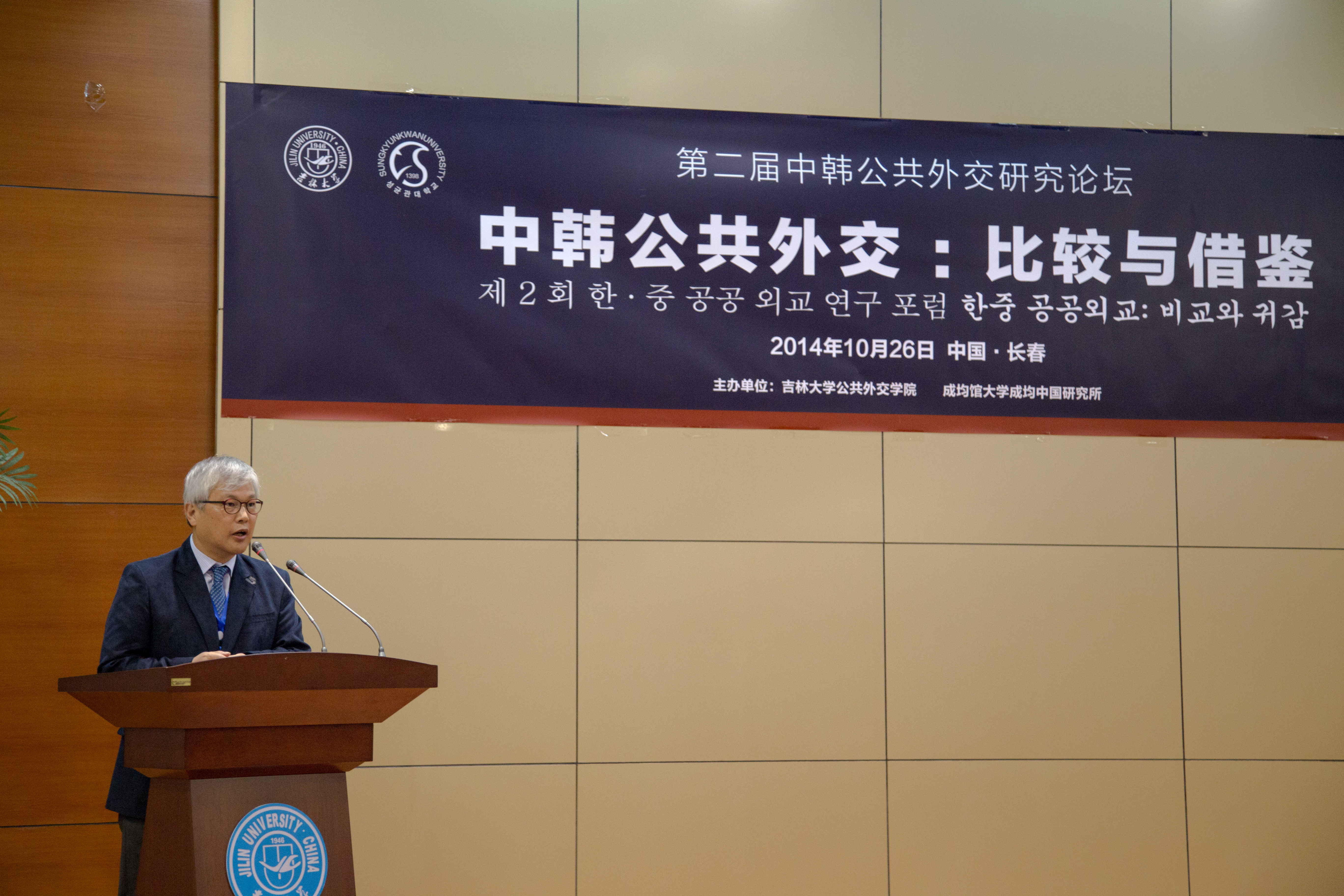 同韩国成均馆大学成均中国研究所建立并保持着密切的学术合作关系,该所所长李熙玉教授为我校客座教授。今年3月,双方分别建立了“吉林大学中韩公共外交研究中心”和“成均馆大学韩中公共外交研究中心”。首届中韩公共外交研究论坛已在成均馆大学成功举办。本次论坛为中韩双方学者提供了交流思想、切磋经验的平台,有利于建立双方稳固的学术纽带,为中韩民间交流开辟新的方向。