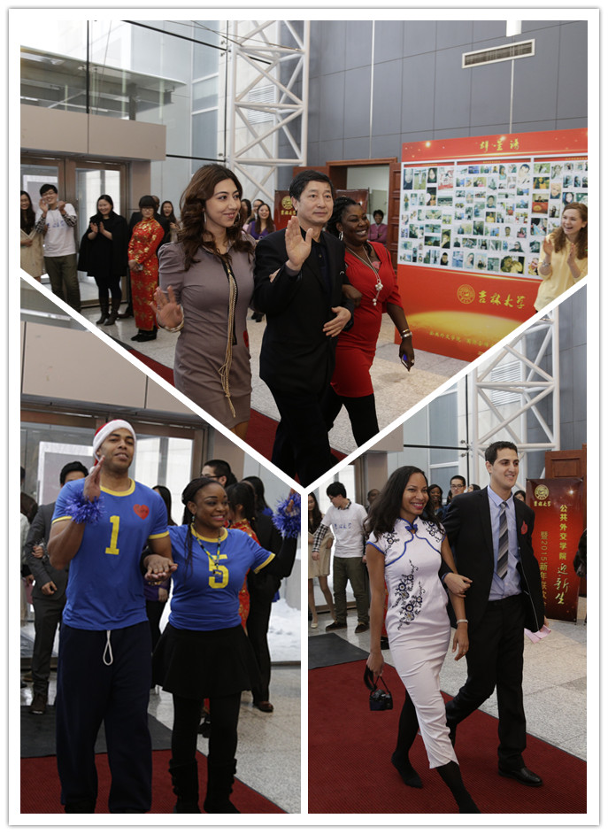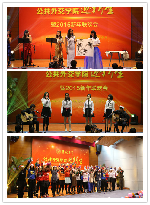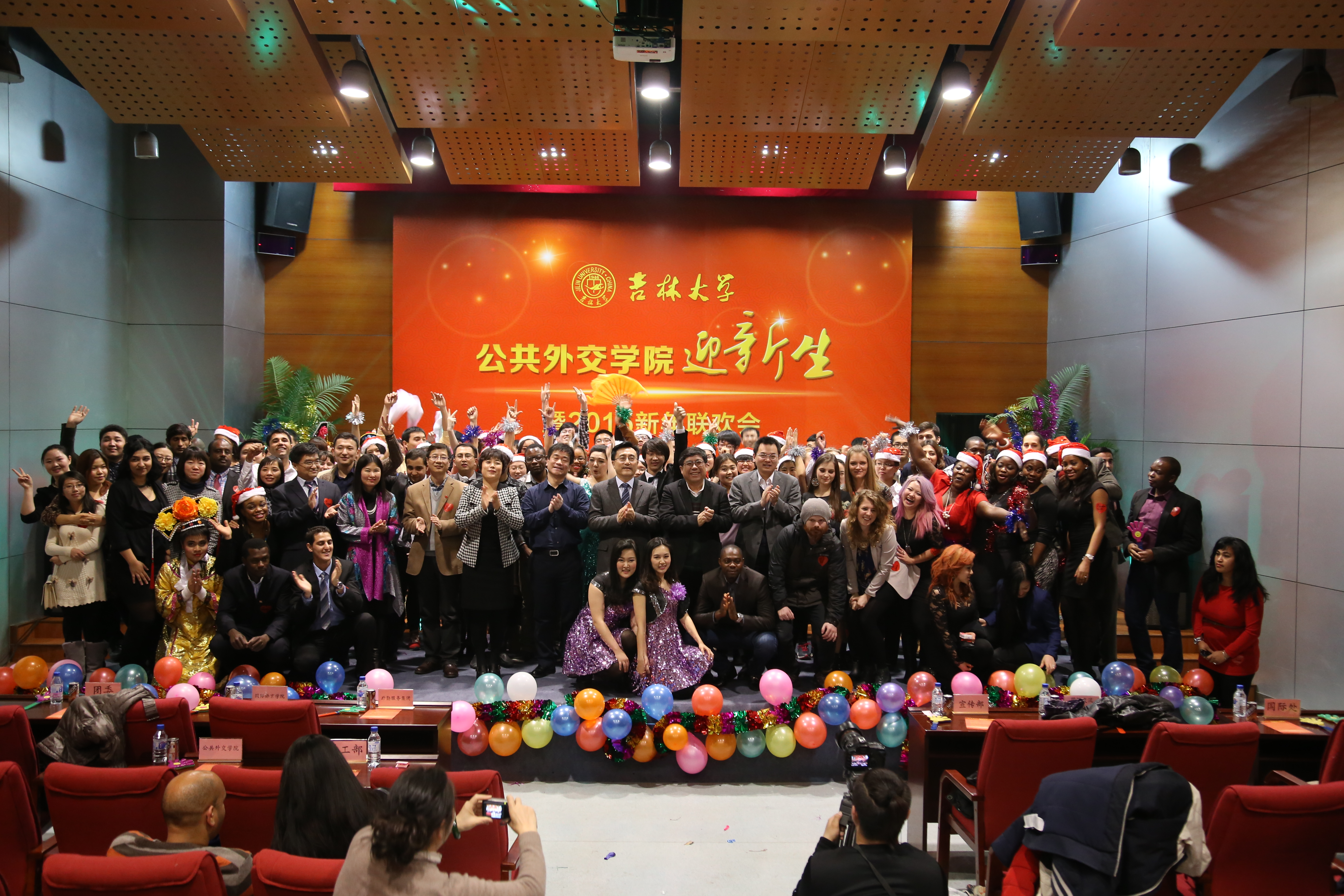 “迎新生暨2015年新年联欢会”在这里隆重举行。来自学生工作部、校团委、宣传部、后勤服务集团、国际合作与交流处、国际交流服务中心、国际语言学院的相关领导,国际合作与交流处工作人员、熟女