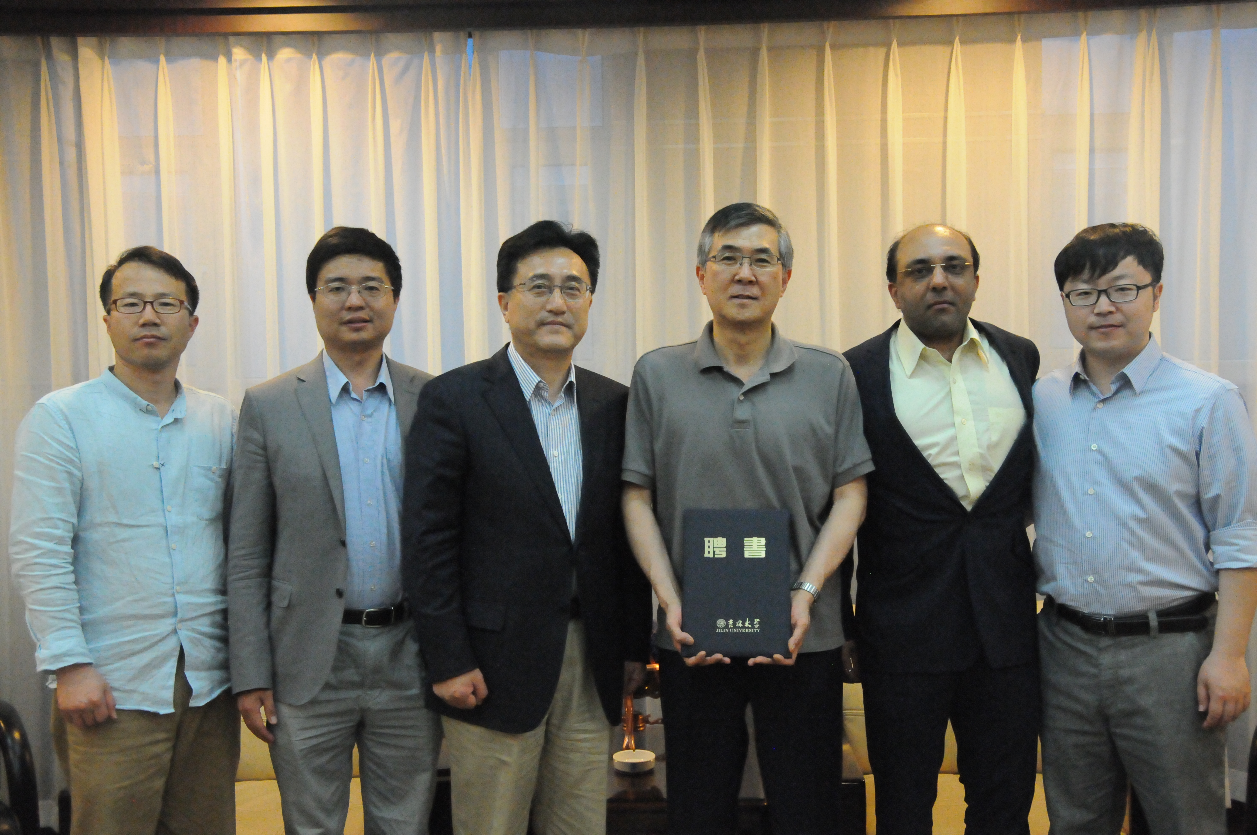 讲座结束后,学院领导及教师团队与Paik教授就双方关心的学术问题以及今后潜在的科研合作项目进行了沟通与讨论。会谈结束后,刘德斌院长将“熟女