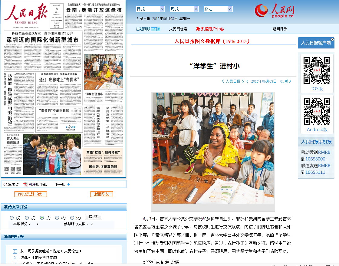 此次活动得到了吉林电视台公共频道的全程跟踪报道,《人民日报》6月8日头版也对活动进行了报道,//paper.people.com.cn/rmrb/html/2015-06/08/nw.D110000renmrb_20150608_3-01.htm。