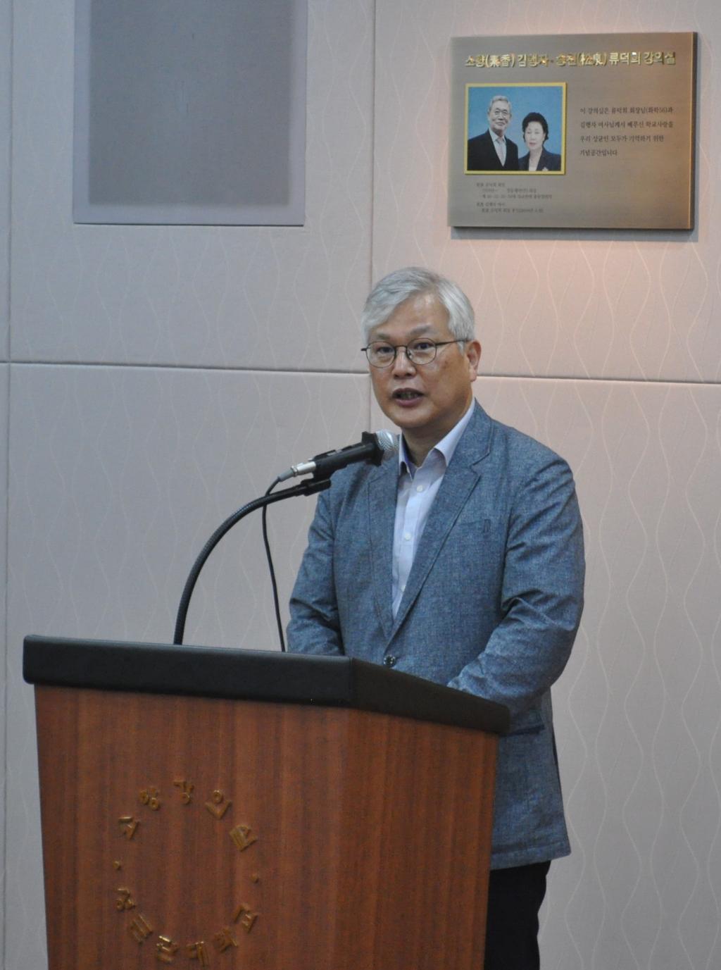 本次论坛由来自中国吉林大学、延边大学、韩国成均馆大学、西江大学、济州和平研究院、统一研究院和世宗大学等高等学校的数十位学者参与。成均馆大学成均中国研究所所长李熙玉教授和刘德斌教授先后在开幕式致辞并发表主题演讲。李熙玉教授的主题演讲题目是“东北亚共同体构建与韩中关系”。他在演讲中分析了美韩关系、中美关系以及科技发展等对东北亚共同体建设的影响,指出国家间要超越“修昔底德陷阱”和“金德尔伯格陷阱”,公共外交在东北亚国际关系和共同体中发挥着重要作用。刘德斌教授主题演讲的题目是“中美关系的变化与东北亚共同体的构建”。他在演讲中分析了近年来中美关系发生“实质性”变化的原因及其给东北亚局势带来的复杂影响,特别是给韩国外交和东北亚共同体建设带来的新的挑战,指出韩国利益的最大化在于如何在中美之间发挥桥梁和纽带作用,并认为美国内政外交的“蜕变”为中韩合作和东北亚共同体建设中增加了新的现实意义。