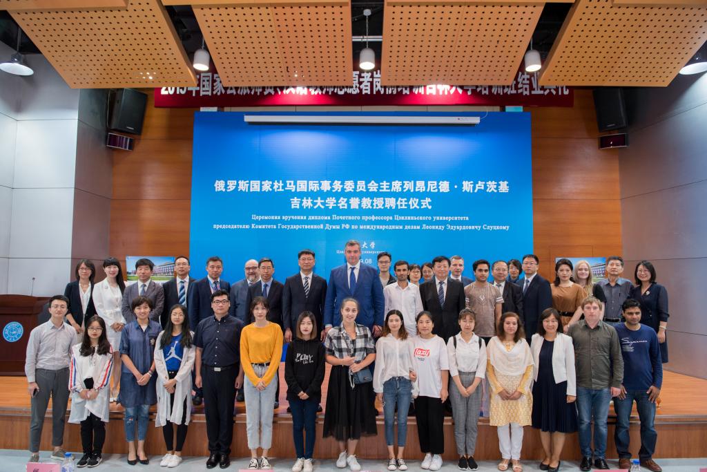 8月23日,俄罗斯国家杜马国际事务委员会主席、莫斯科大学政治学系国际关系和一体化进程教研室主任列昂尼德·斯卢茨基在国际学术大讲堂受聘为吉林大学名誉教授。吉林省人大民族侨务外事委员会、吉林省人大常委会办公厅对外联络处、吉林省外事办公室欧亚处相关负责人,吉林大学校长张希,常务副校长邴正,党委宣传部、社会科学处、熟女