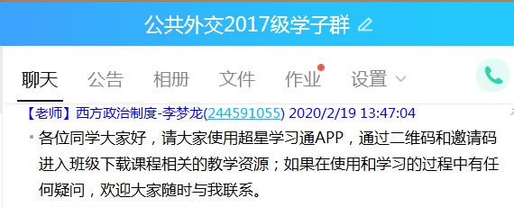 基于学校下达的关于开展在线教学活动的文件《关于做好2019-2020学年第2学期延期开学期间在线教学工作安排的通知》指示精神,学院进行了在线教学课程申报动员,鼓励教师们在特殊时期积极地参与到这一全新的教学尝试当中。学院组建了疫情时期本科在线教学微信群,由孙兴杰副院长负责牵头在线课程申报及课程规划等相关工作,由本科教学与科研办公室主任郑广超组织协调相关工作,同时安排陈曦、崔悦两位教师作为对接教务处及超星平台技术人员的联络员,这一工作制度安排能够有效保证教师们在线教学工作遇到问题时有专人负责应对与解决。