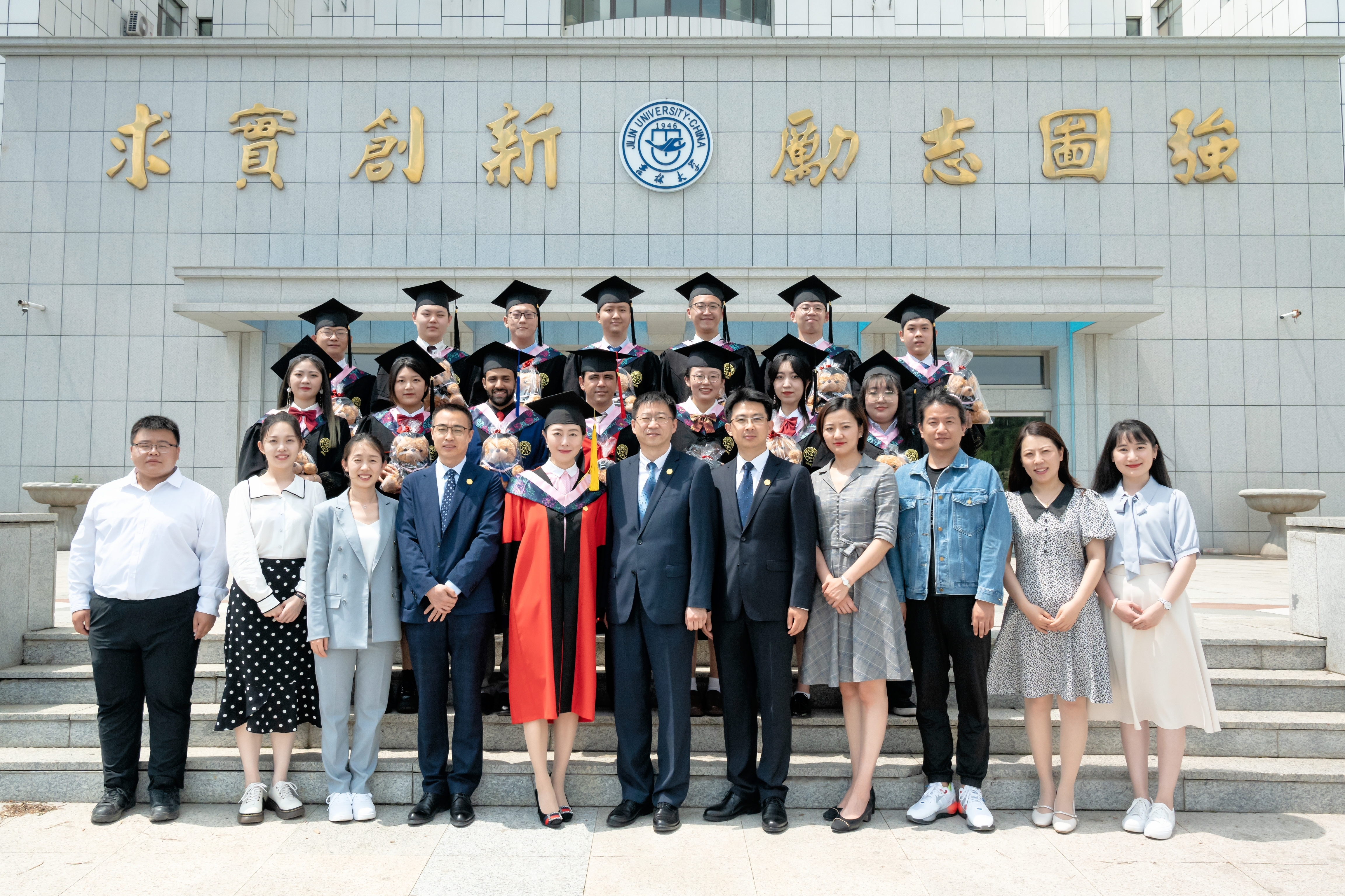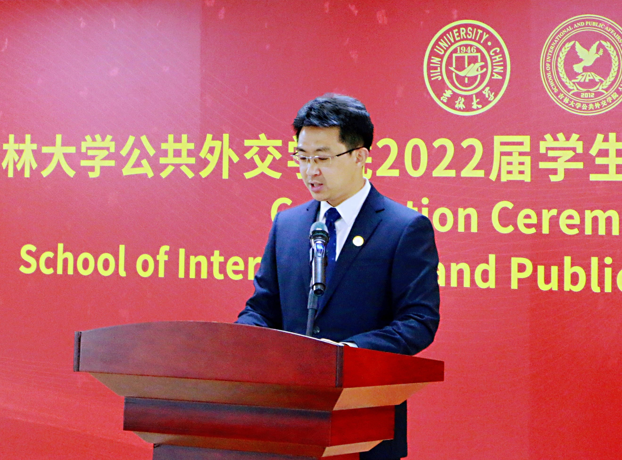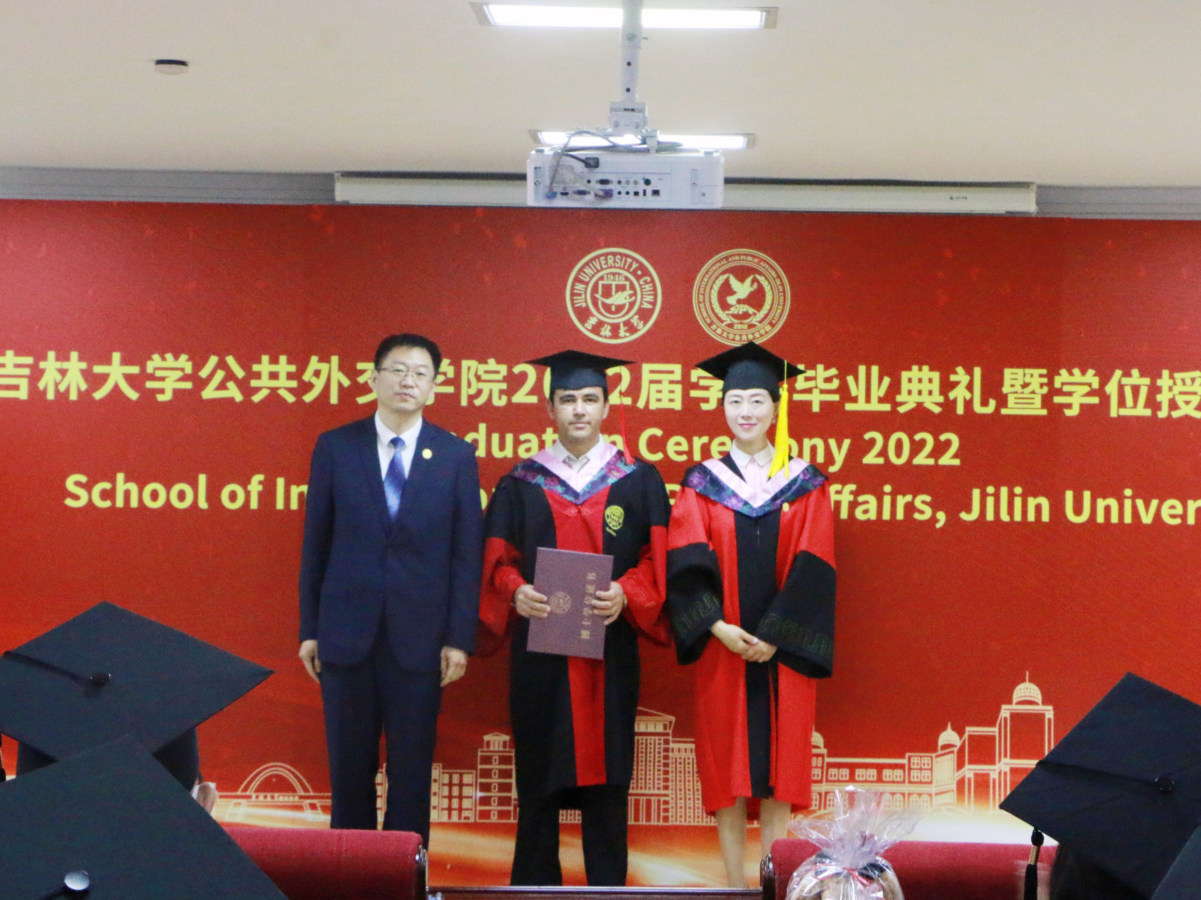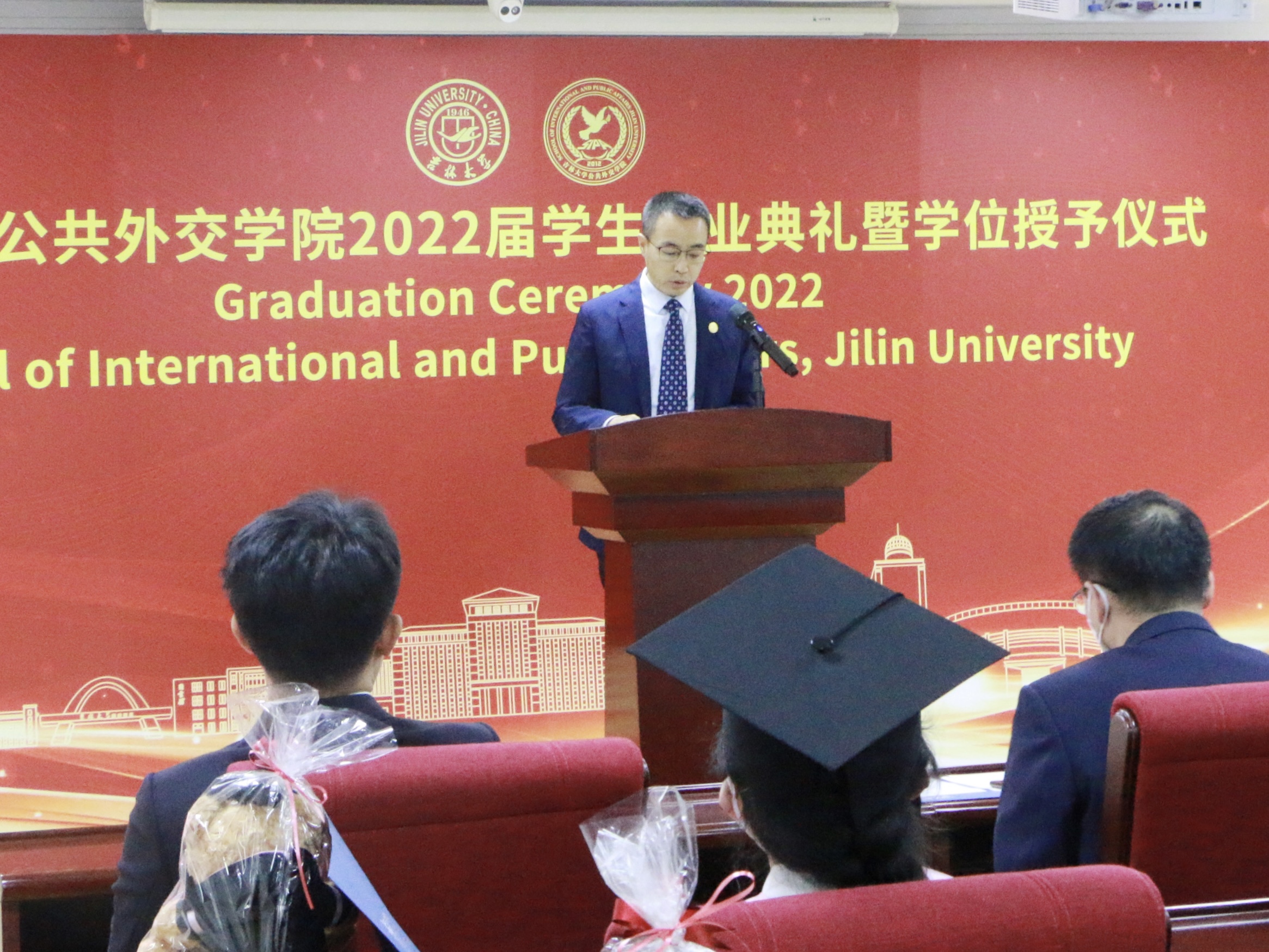 在毕业生发言环节中,本科生代表宋美超同学表示,吉林大学“严谨的学风”和“扎实的教风”激励她不断向前,学院老师们无论是“做学问”还是“做人”都以身作则,给同学们树立了良好榜样。她鼓励同学们永远具有成长的激情,拥有“敢于失败”的勇气,保持思想和人格的独立,拥有感受爱和给予爱的能力。研究生代表刘冠霖同学感叹三年的校园生活赋予其智慧、理性和成熟,使他逐渐走出青涩,迈向成熟。在他看来,学院不仅传授了专业知识,更提供了一个追梦的平台,使同学们能够以更宽广的眼光观察这个世界。留学生代表Charity Mwathi来自肯尼亚,受疫情影响无法来到中国,只能在国内线上学习。在发言中,她谈到自己作为一名国际学生,从改变学习方式到适应时差并保持专注,从课下阅读到课上讨论再到论文研究,在老师们的帮助和教导下,她始终没有放弃。她感谢中国政府和吉林大学给了她完成学业的机会,让她能够提高职业能力,成为更好的自己。虽然毕业了,但希望有一天能够来到中国,到吉大看一看。