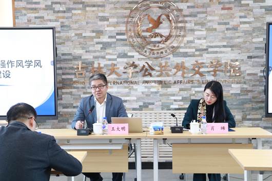 教职工深刻剖析了科研诚信的重要性。随后,王大明对《吉林大学预防与处理学术不端行为办法》《科研失信行为调查处理规则》《高等学校预防与处理学术不端行为办法》等相关文件进行了重点讲解,并详细介绍了我校学风建设相关工作流程及进展,为熟女