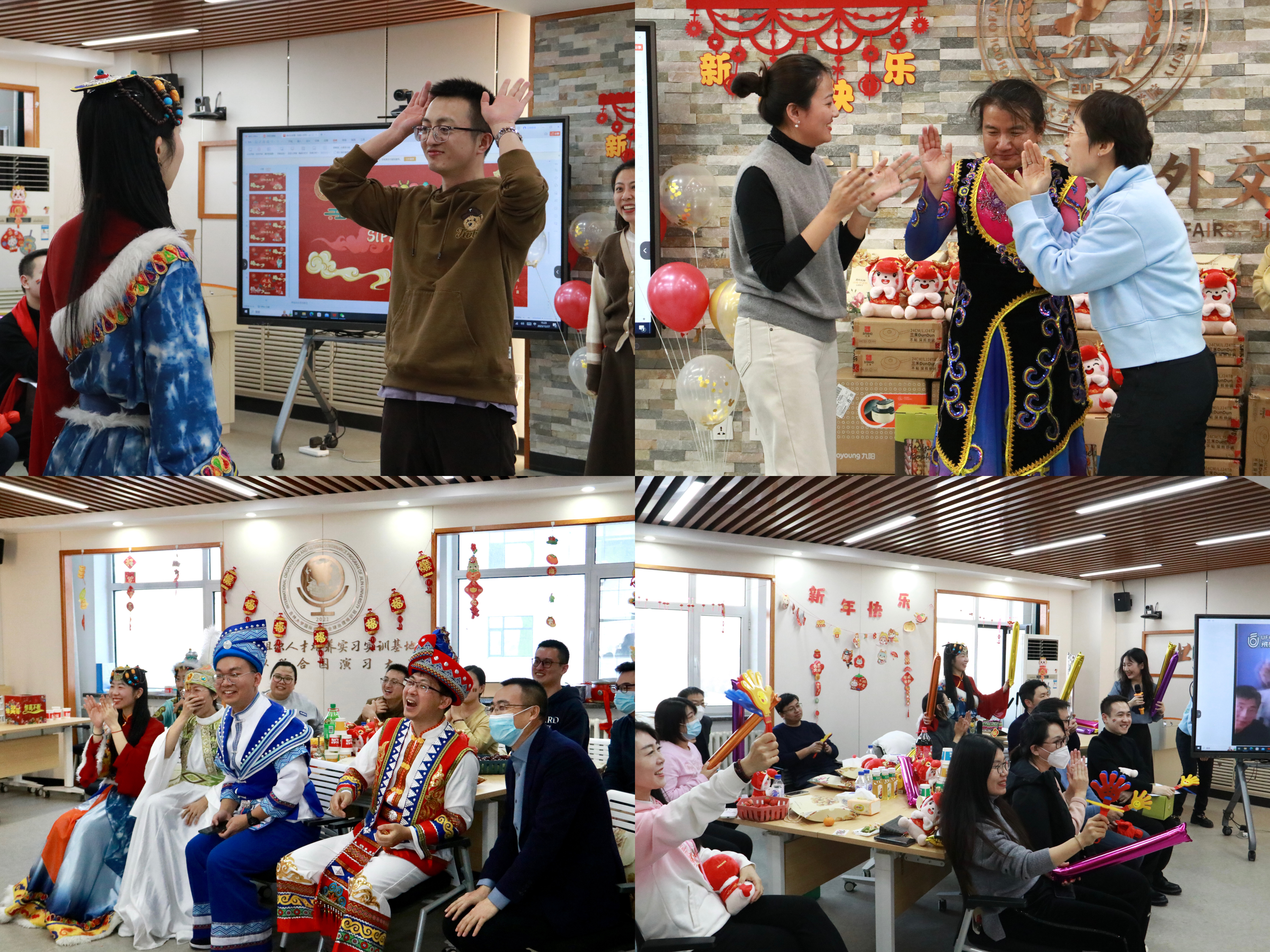 在节目表演过程中,穿插了丰富的游戏和抽奖互动环节。教职工们踊跃参与一场场扣人心弦的游戏,彼此传递着新年的祝福、分享着中奖的喜悦。在考验默契值的“你划我猜”游戏中,教职工们用肢体语言传递携手前进、同心奋斗的情怀;在“猜歌名”游戏中,教职工们凝心聚力、配合默契,在动感的音乐中激发无限潜能,现场欢笑声迭起。