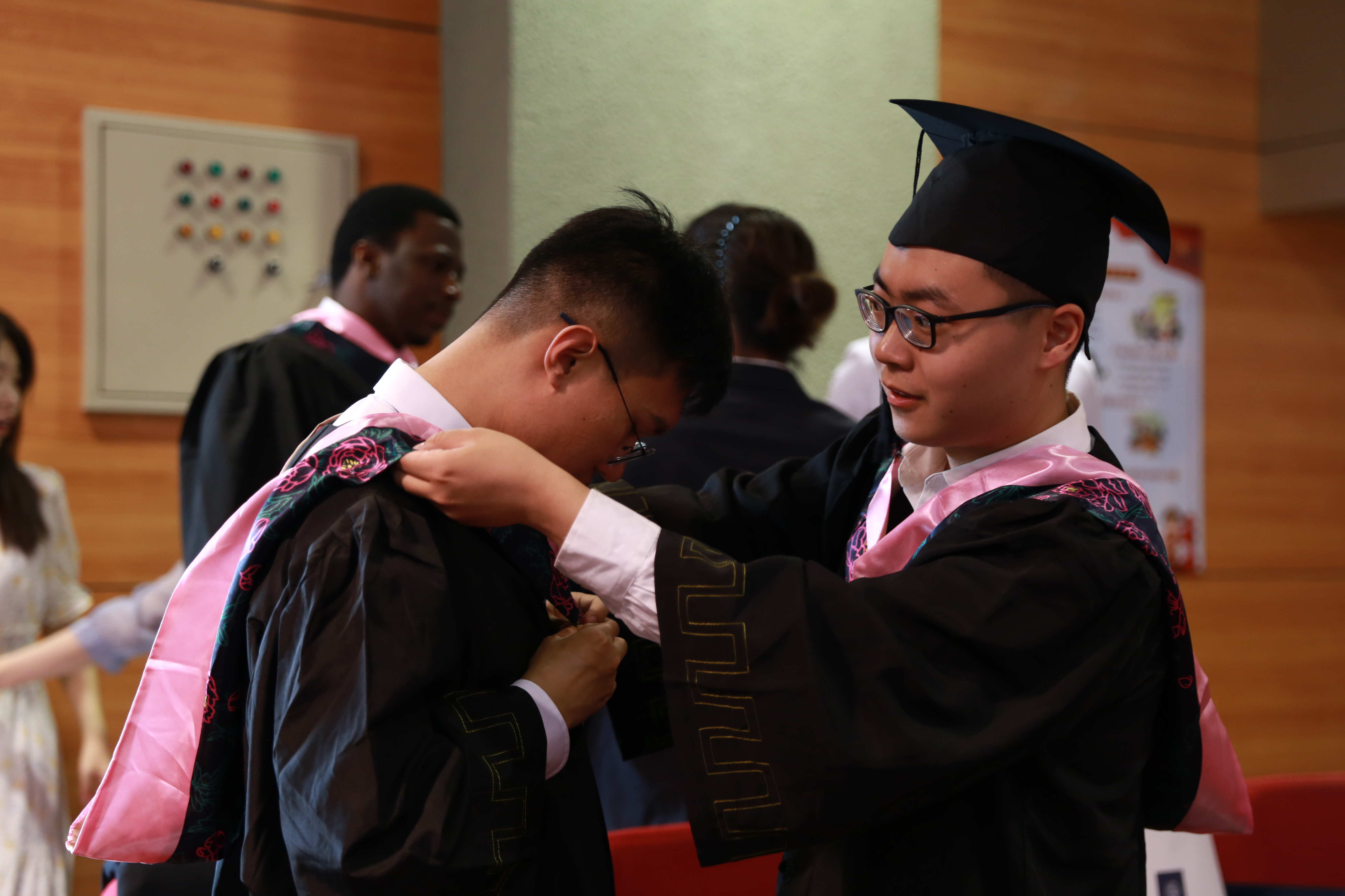 凤凰花开又一载,学子吟游诉别情。今天,我们在这里举行吉林大学公共外交学院2021届毕业典礼,共同见证同学们的高光时刻。在此,请允许我代表杨民书记、代表全院教师向2021年毕业的37名本科生、13名硕士研究生和20名留学生致以最诚挚的祝福和最美好的祝愿!祝贺你们获得了专属自己的吉大戒指和外交小熊,祝贺你们将名字永远烙印在吉大的学位证书上!