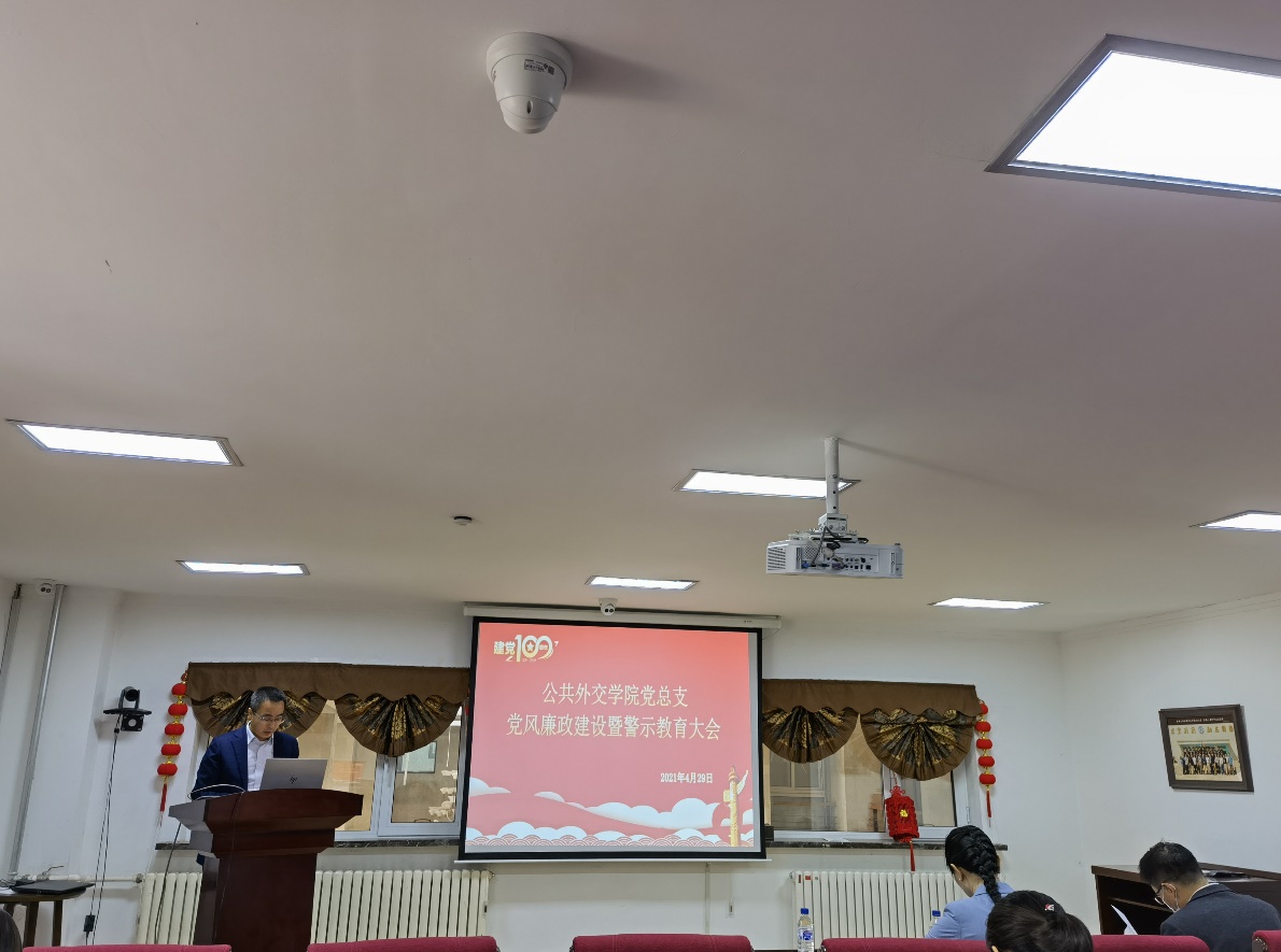 于洪生副院长通报了吉林大学2020年以来学校的违法违纪情况,杨民书记传达学习了学校党委书记姜治莹同志在吉林大学2021年全面从严治党工作会议暨警示教育大会上的讲话精神。