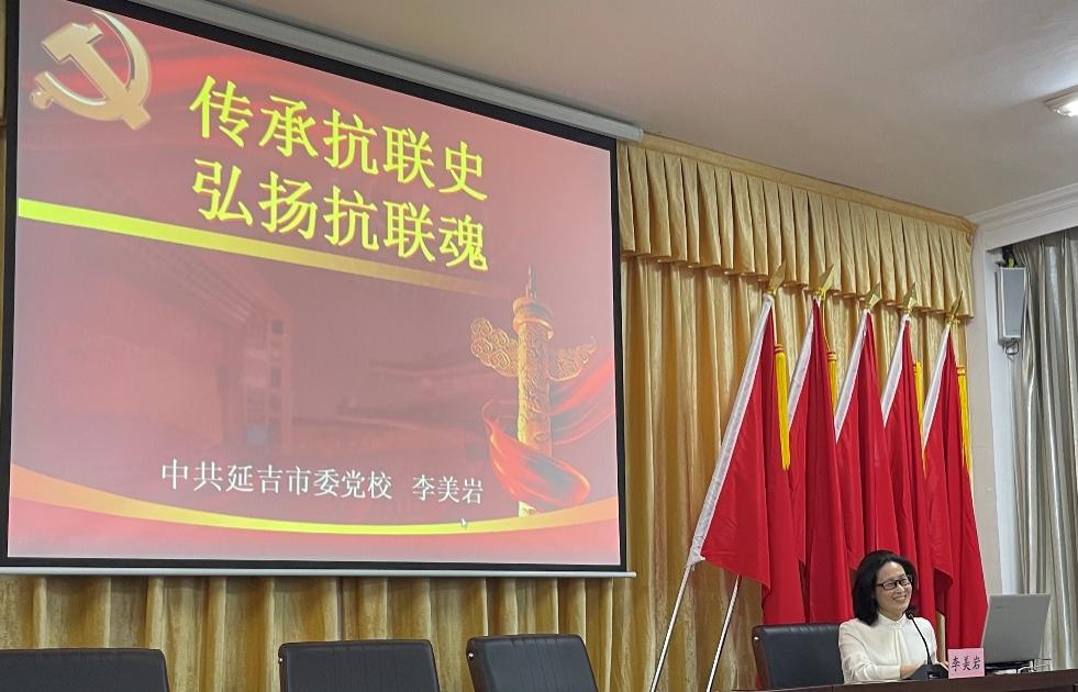 延吉市委党校李美岩老师为培训班学员做了题为《传承抗联史 弘扬抗联魂》的专题讲座,使大家对东北抗联的伟大历史进程、传承和发扬东北抗联精神的重要性有了更深入的理解。