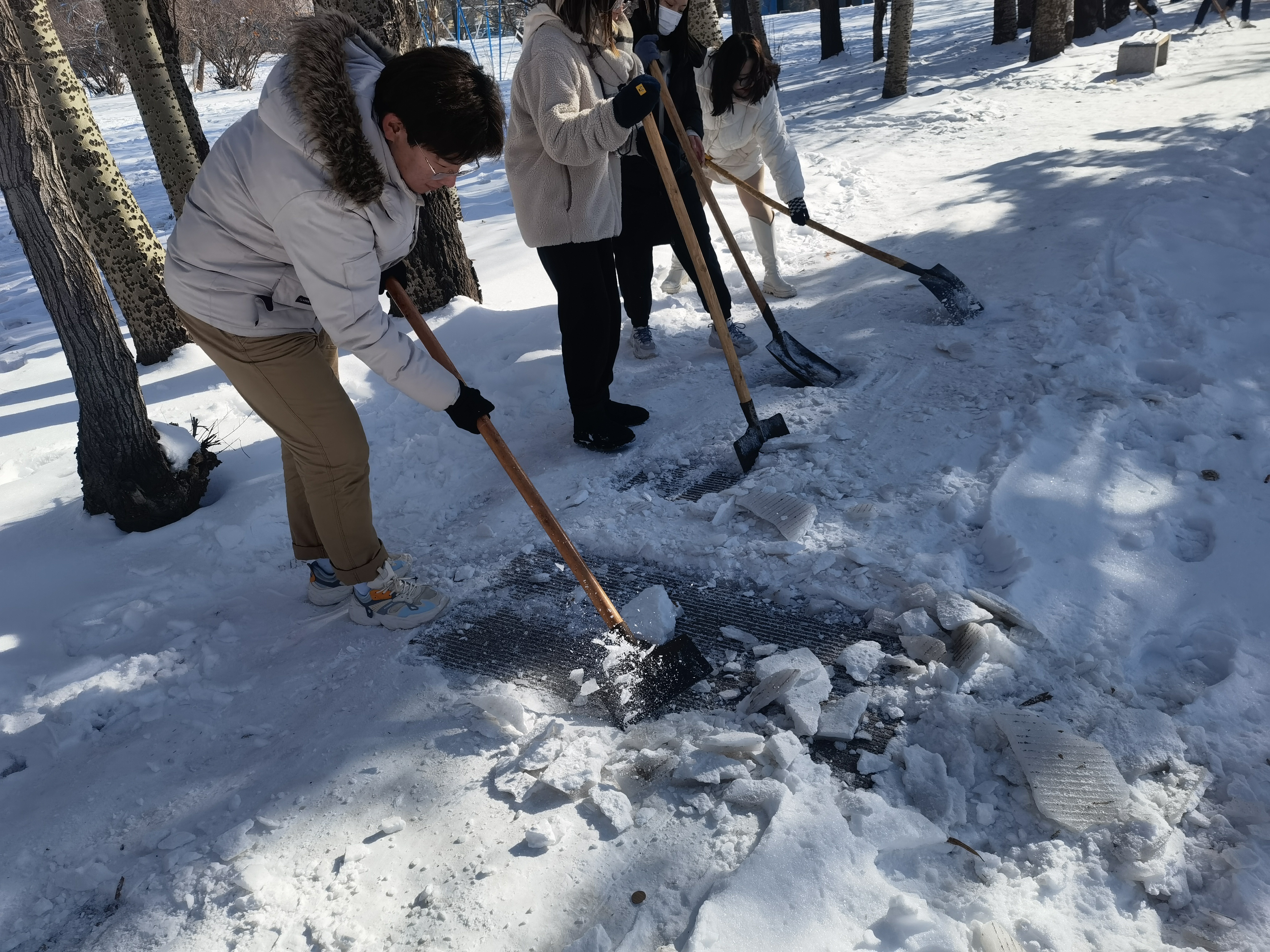 下过雪后的吉大校园,一片洁白宁静的景象,处处显出北国风光的独有魅力。然而雪后气温寒冷,降雪频繁,雪后校园道路结冰,对师生出行造成了极大困扰。为了全面发挥入党积极分子的先锋模范作用,培养服务意识、责任意识和奉献意识,贯彻学院劳动教育的精神宗旨,同时更是为了校园师生的安全出行,避免走路打滑摔跤,为校园增添一份温情。11月12日中午,熟女