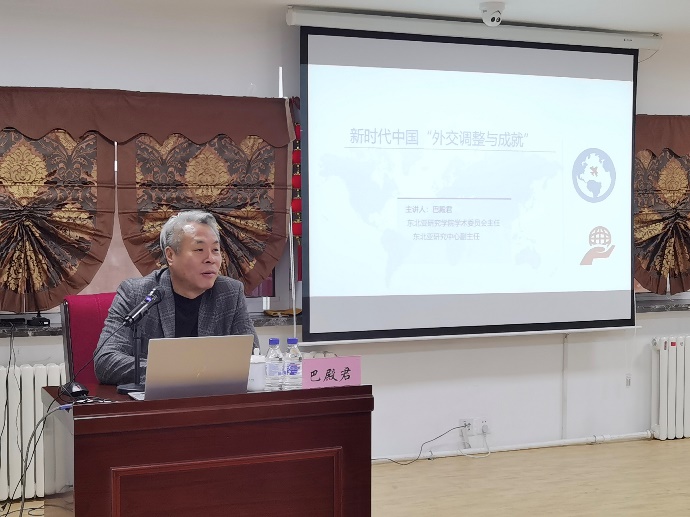 宣讲会上,巴殿君老师运用生动的案例、丰富的史实,围绕学习贯彻习近平总书记在党的十九届六中全会上的重要讲话精神和《中共中央关于党的百年奋斗重大成就和历史经验的决议》,结合学院的学科特色,以新时代中国“外交调整与成就”为主题进行了宣讲。巴老师从国际秩序演进的角度系统讲述了冷战结束后的三个重要历史节点,以恐惧、屈辱、希望三种情感为切入点详细讲解了情感政治下百年未有之大变局,以一个战略方向、两个外交政策的重点指向、三个国家战略目标和四个外交原则分别阐释了中国外交政策调整与取得的重大成就。报告在最后部分,通过回顾新中国成立后的外交历程,总结了我国外交取得重大成就的根本原因在于坚持党集中领导:不断学习与借鉴以往的成功经验与教训,通过积极促进“一带一路”国际合作积极参与全球治理体系改革和建设,从而为推动构建人类命运共同体的实现提供助力。