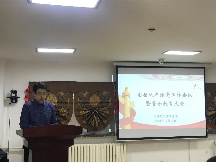 宣讲会后,学院召开党风廉政建设警示教育大会。学院党委副书记、纪委书记王力同志传达了校党委副书记、纪委书记薛徽《以深化全面从严治党引领保障学校事业高质量发展—在吉林大学正处级领导干部加强政治能力建设专题研修班上的讲话》精神,并通报了2021年以来学校违规违纪违法典型案例。王力强调,全院教职工要深刻学习领会习近平总书记关于全面从严治党的重要论述,认真学习薛徽同志的讲话精神,全面认识高校党风廉政建设的重要意义。全院教职工要以通报案例为鉴,牢牢树立红线意识,提高政治判断力、政治领悟力和政治执行力,抓早抓小,防微杜渐,在各项工作中融入政治纪律、政治规矩和法治思维,积极营造学院风清气正的育人环境。