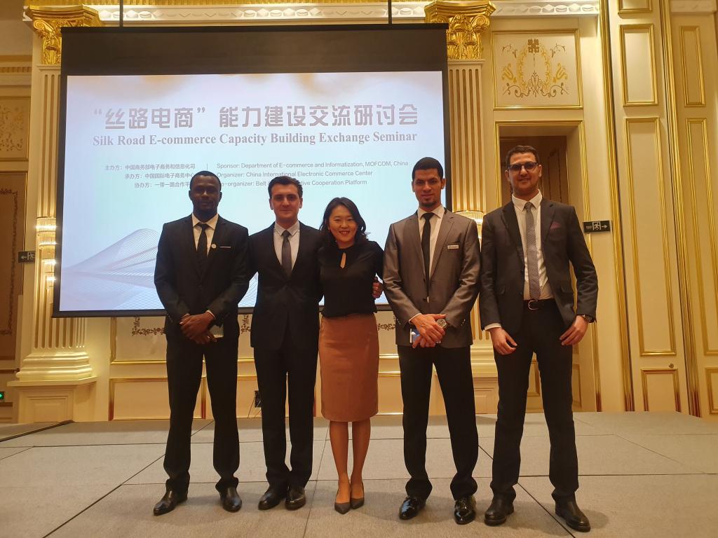 的留学生代表(Ait Laadam Jamal, Kim Yoohan, Bassem Khaled Abdelsalam Elmaghraby, Assoumi Harouna Abdoul Karim和Jamali Aisha)参加了此次会议,并在大会上进行了发言,对海外创新、共建“一带一路”平台等问题发表了独到的见解。这是吉林大学的留学生代表首次参加以“丝路电商”能力建设为主题的研讨会。出席这样高水平的学术会议对同学们来讲是一次考验。最终,同学们的不断努力得到了包括电商研究中心主任、上海财经大学博士生导师劳帼龄在内的会议组织方及其他参会嘉宾的高度赞赏,展示了吉大学子的良好的学术素养和精神风貌。