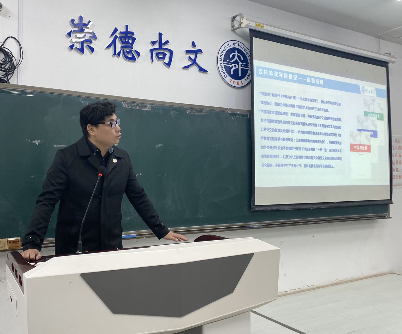 乔蕊老师、李梦龙老师及研究生招生宣传助理胡帅同学和邢晓曼同学前往大连外国语大学开展宣讲活动。