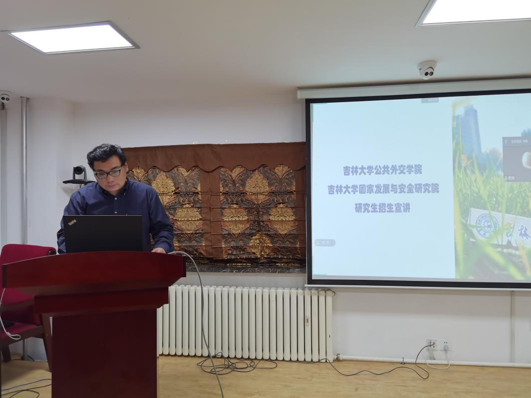宣讲会上,乔蕊老师简短介绍了宣讲内容和宣讲团成员。李梦龙老师对吉林大学的基本概况进行了较为全面的介绍,并围绕学科建设、师资队伍、科研成果等方面介绍了熟女
