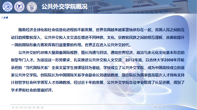 宣讲会上,熟女 与国家发展与安全研究院专职教师陈曦、乔蕊、崔悦、李明等从学科建设、师资力量、科研成果、人才培养等方面分别系统地介绍了学院与研究院的建设发展情况。熟女 自2012年建院以来,培养了大批懂交流、善合作的国内外优秀公共外交人才;2021年吉林大学成功获批国家安全学一级学科博士学位授权点,成为全国首批、东北地区唯一一家建设单位,这不仅体现了学院与研究院强劲的综合实力以及“国际化、重实践”的鲜明特色,更全方位地体现了学院与研究院近年来蒸蒸日上的发展势头,在立德树人、培育英才方面取得的显著成效,以及服务国家重大战略需求的责任感与家国情怀。