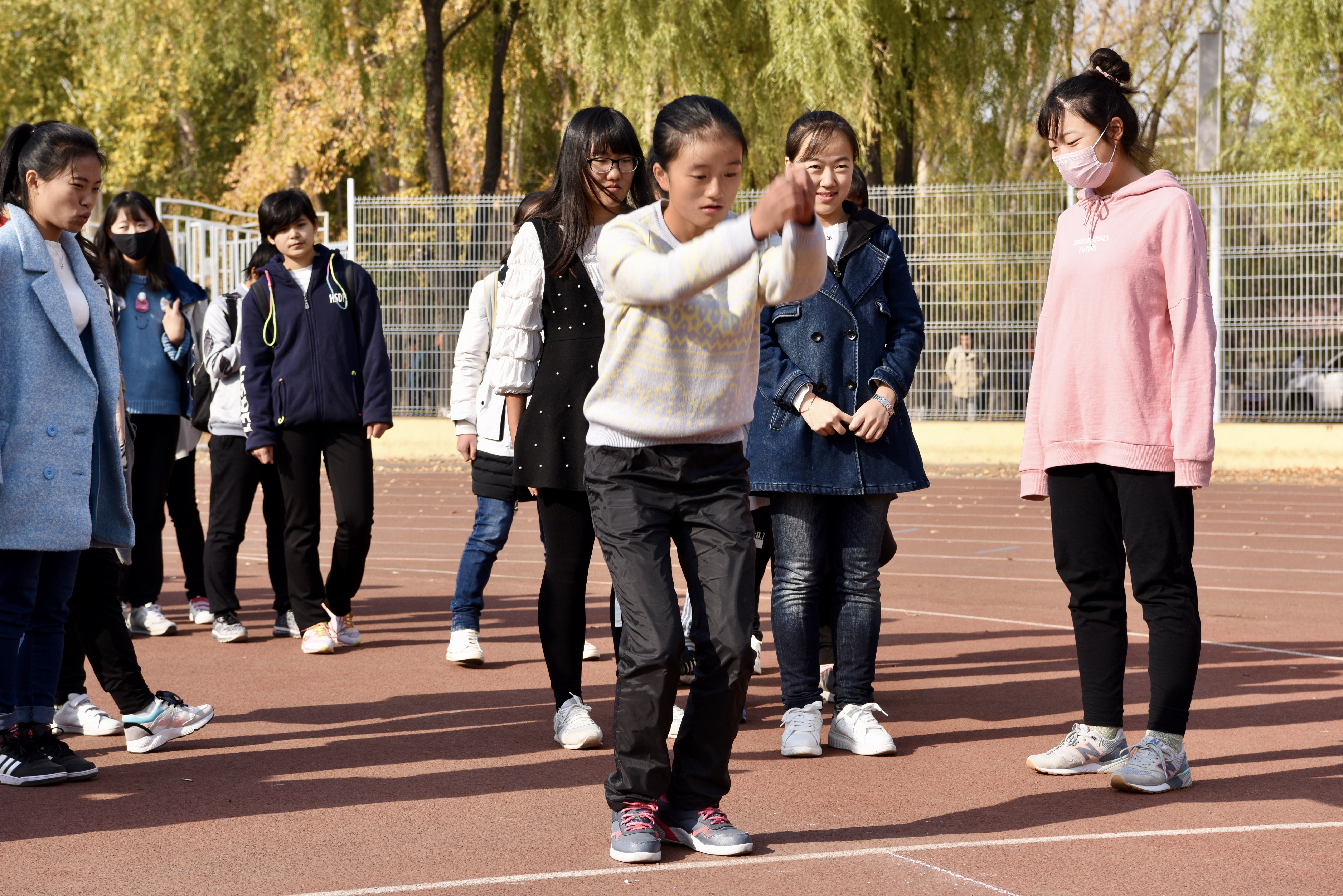 参加了体育学院主办的立定跳远比赛。虽然天气渐凉,但三次试跳唐艺伟同学发挥良好,均取得不错的成绩。