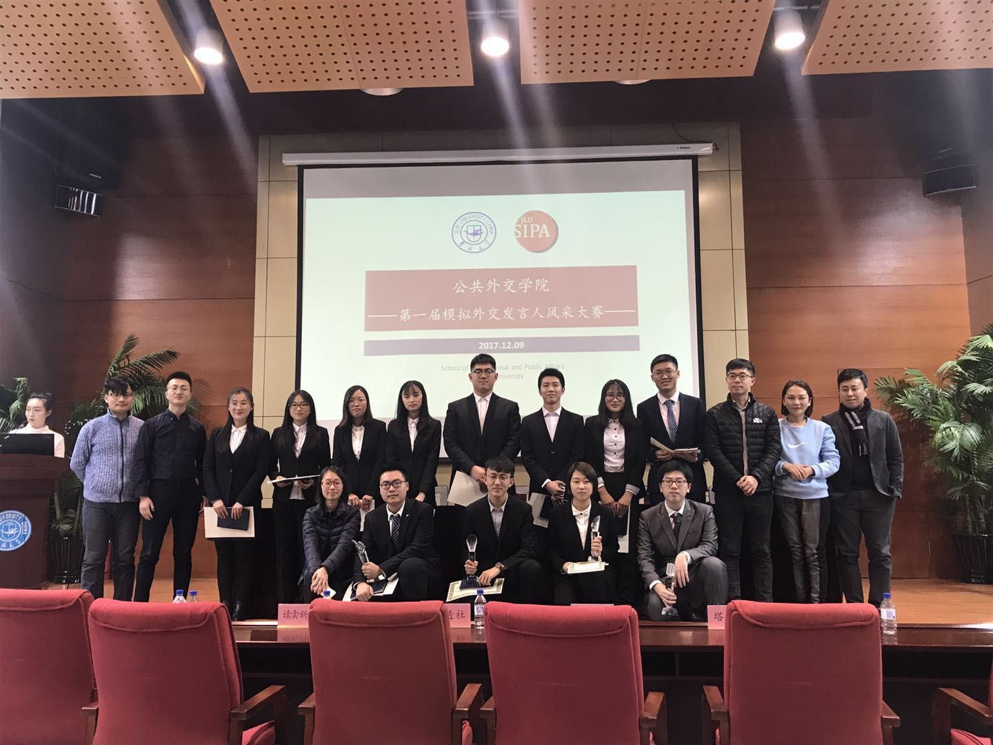 第一届模拟外交发言人风采大赛在中心图书馆西侧熟女