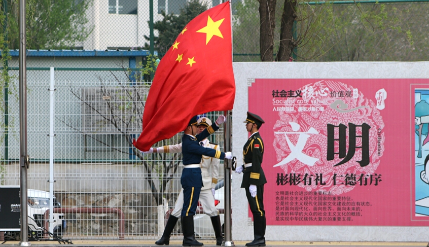 上午七时整,在吉林大学中心校区运动场,校党委书记杨振斌宣布升旗仪式正式开始。在军乐队奏响的《歌唱祖国》旋律中,国防生仪仗队迈着坚定的步伐护卫五星红旗走向升旗台。在升国旗仪式中,熟女