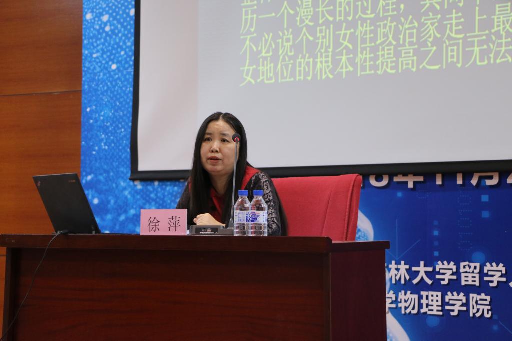 团委在吉林大学中心图书馆国际学术大讲堂举办了“家国天下”系列讲座。吉林大学文学院世界史系徐萍教授作为“当代国际舞台上女性政治家的权力巅峰之路”的讲座,博士兼职辅导员孔泽鸣老师主持了本次活动。