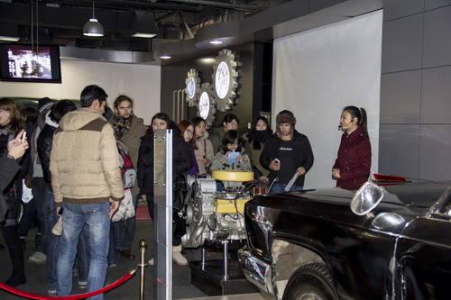 在长春第一汽车制造集团工作人员的陪同下,留学生们饶有兴致地参观了红旗文化展馆和奔腾牌轿车生产基地。在展馆中,留学生们通过介绍看到了一台台不同年代生产的红旗轿车,了解到由我国自主研发的红旗轿车的创业历程和发展史。当参观轿车生产线时,来自西班牙的“孔子新汉学计划”联合培养博士生贾维尔同学惊讶地感慨道:“没想到中国汽车工业发展的这么迅速,工人操作的这么熟练,生产车间自动化程度这么高”,他一边观看还一边向我们介绍西班牙汽车工业发展现状,并将两国汽车生产情况进行比较,他觉得中国一汽今后会有更快更好地发展。其他留学生在参观结束后也纷纷表示,非常高兴能参加这样一次有意义的活动,希望以后还能参加类似的活动。