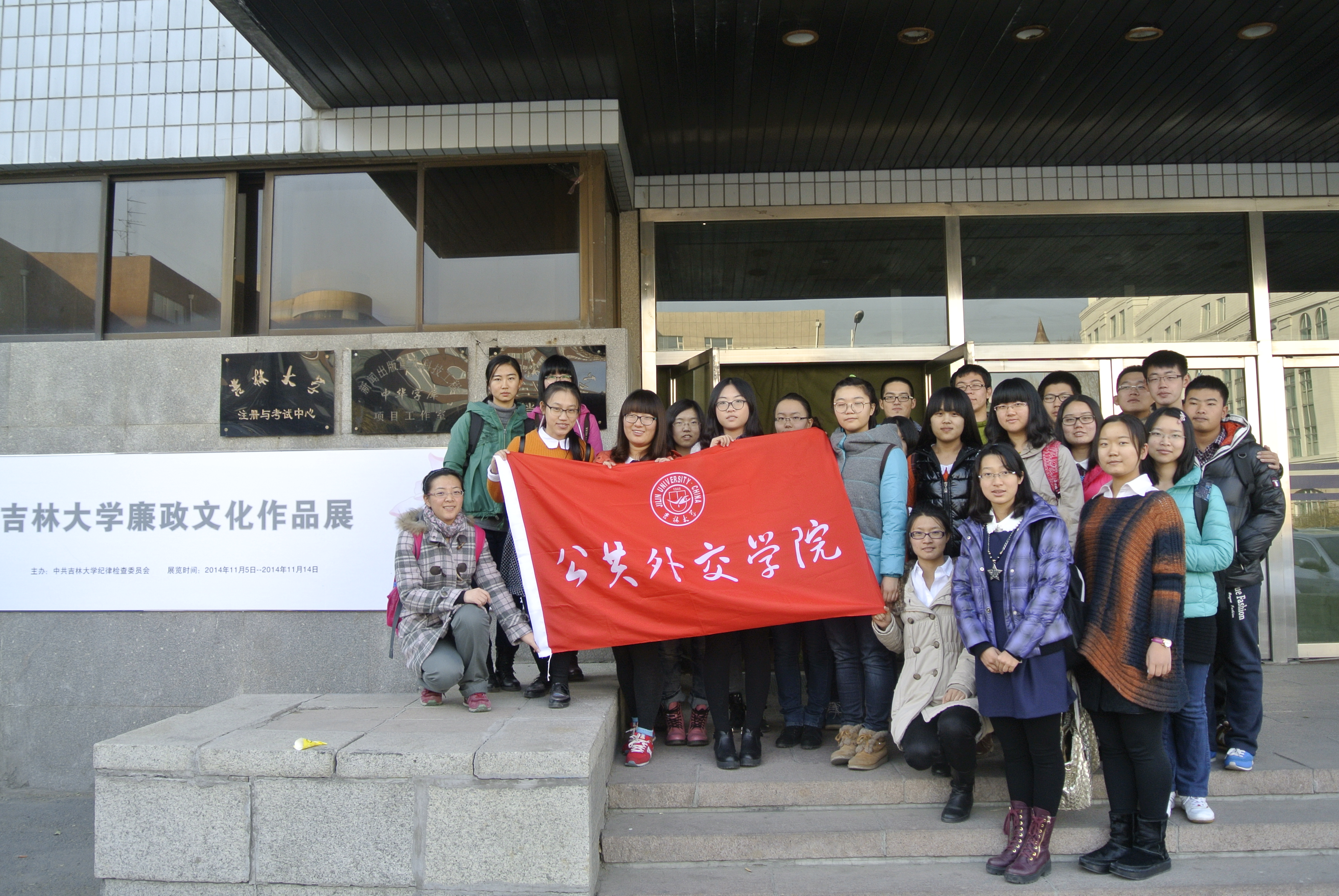 师生来到逸夫图书馆展厅,参观“吉林大学廉政文化作品展”。