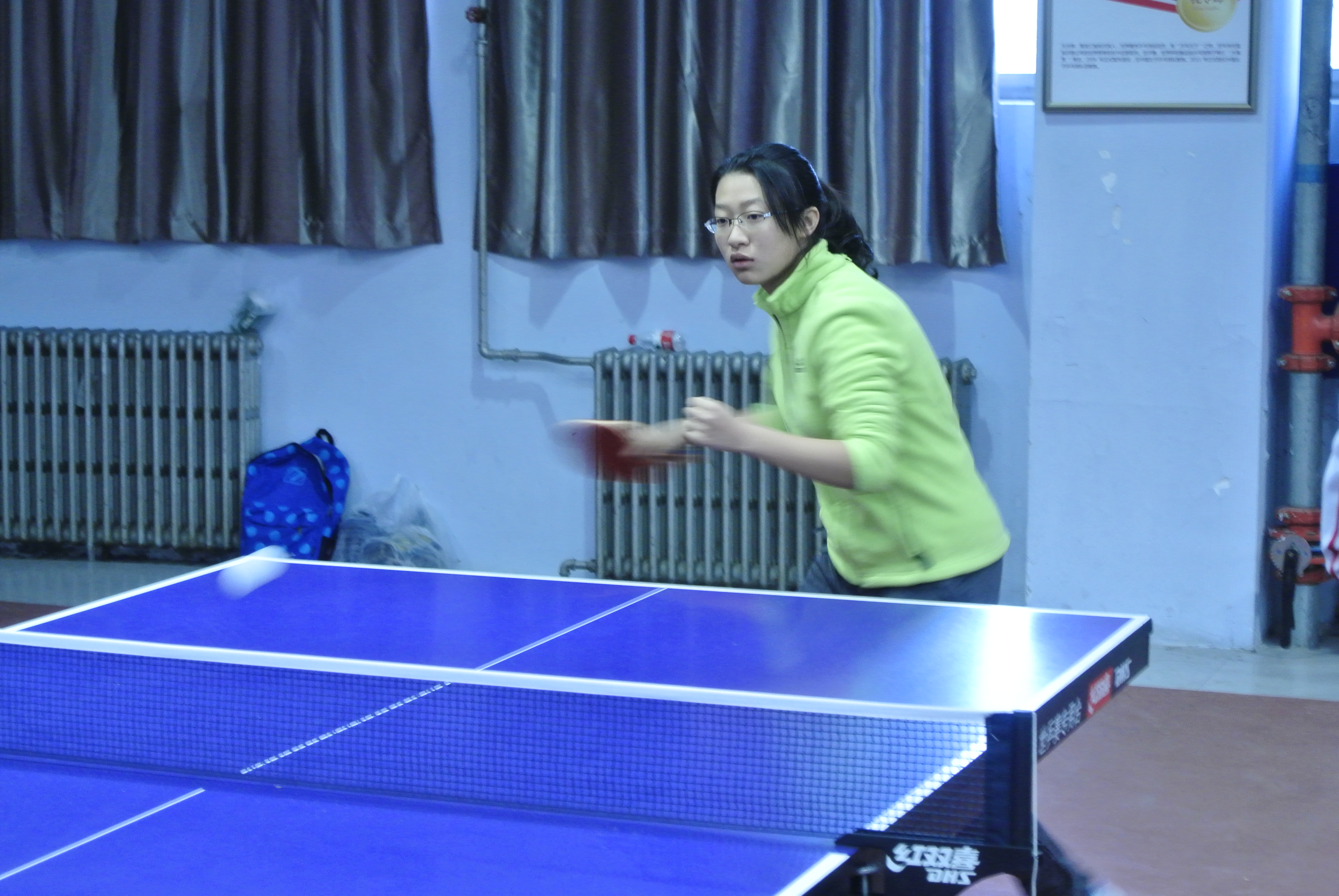 北国寒冷的冬日并不能影响同学们参加体育活动和强身健体的热情,同学们都对这次难得的锻炼机会都表现出极大的兴趣,纷纷报名参加,其中不乏个人乒乓球素养很高的同学涌现。最终选定由四名女同学代表熟女