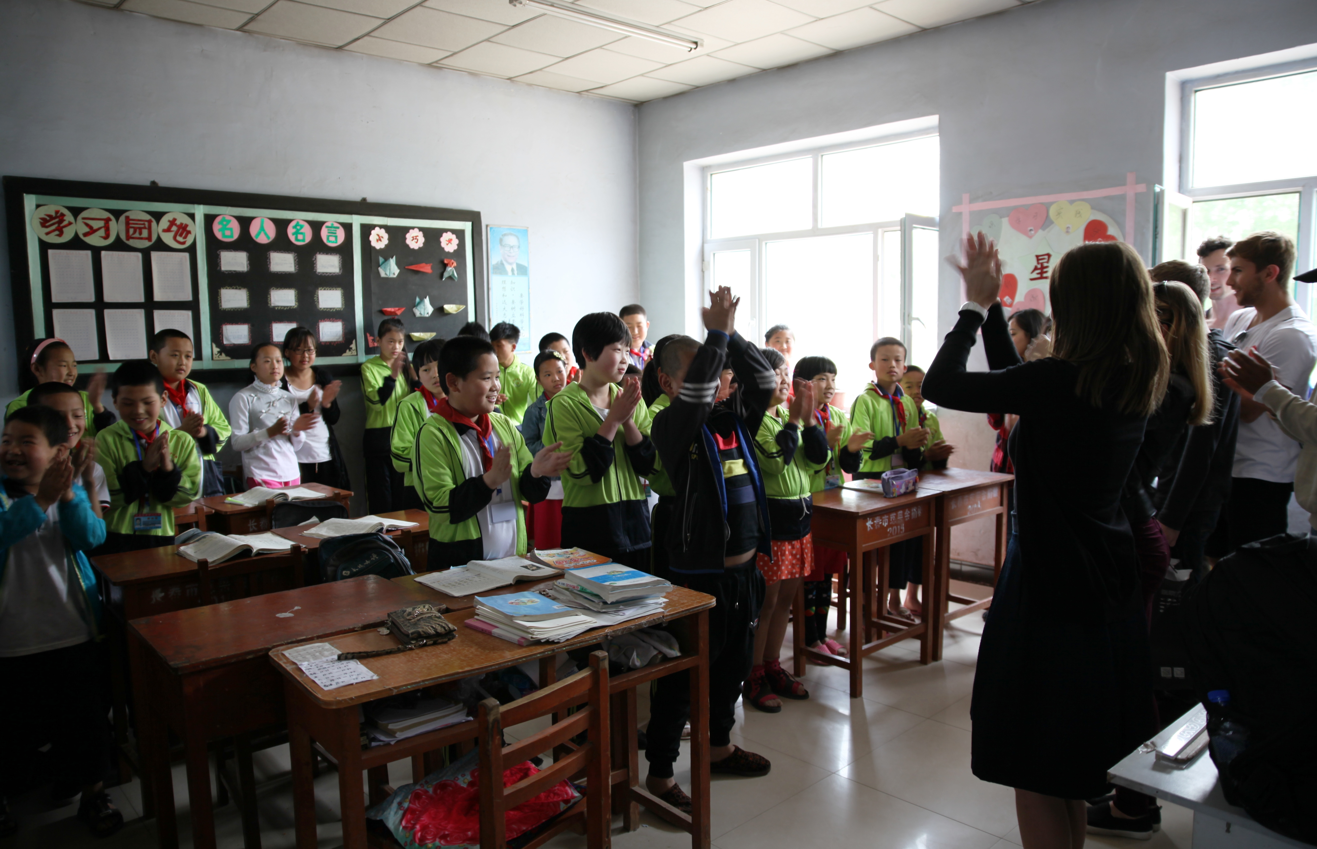 参加暑期班的里贾纳大学的留学生一同来到了农安县万金塔乡小城子村小学。当大家一走进五年级一班的教室,就立即被孩子们热烈的欢迎声所感染了。一张张稚气未脱的脸庞上洋溢着最纯真的微笑。微笑是没有国界的,这些来自异国的大哥哥大姐姐们被这些纯真的笑脸瞬间感动了。