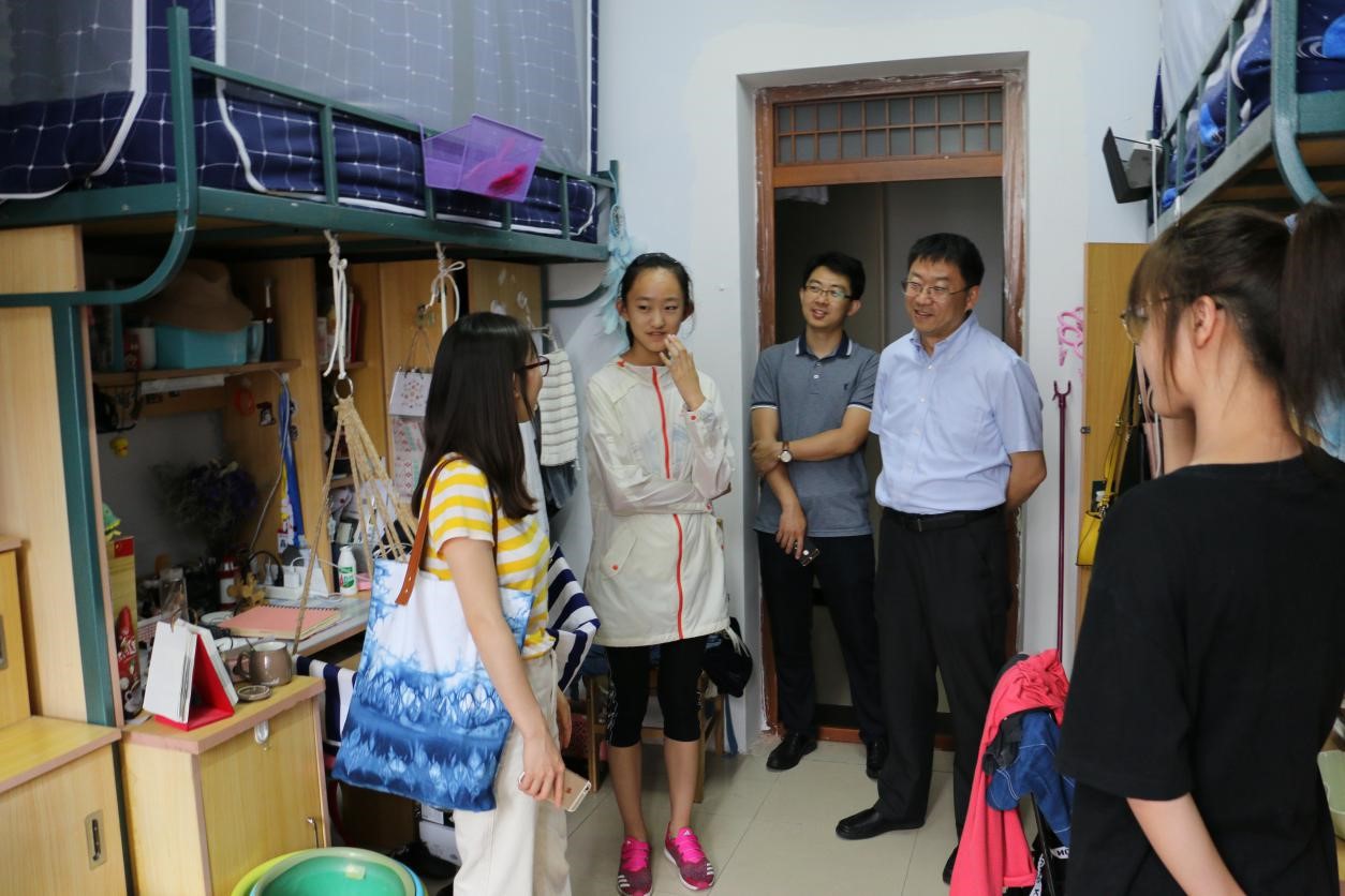 在学生寝室,杨民老师和同学们进行了亲切友好的交流,询问了毕业生去向和具体安排,叮嘱出国留学的学生在国外要注意安全;叮咛非毕业班学生好好复习,取得好成绩。