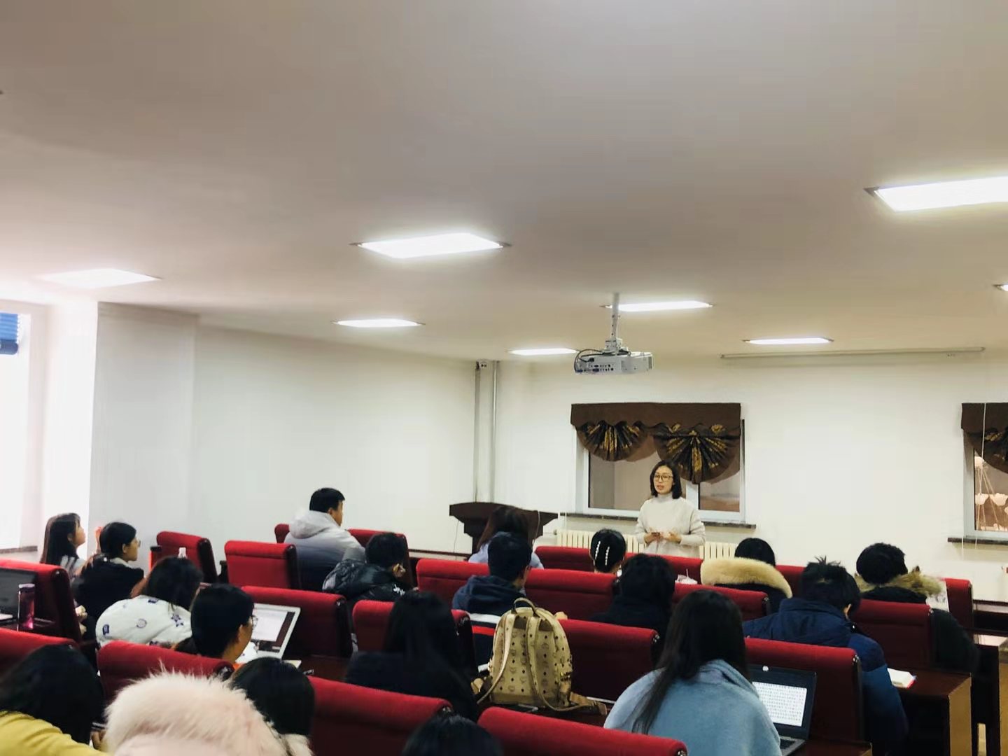 2017级本科生于行政楼二楼小报告厅召开了年级大会暨诚信考试教育大会。会上, 2017级本科生辅导员张淑艳老师先后就假期安全、寝室安全、诚信考试、期末复习注意事项等内容进行讲解和说明,并由各班级学习委员宣读《吉林大学考场规则》,组织同学们共同签署《吉林大学诚信考试承诺书》。随后,按照党员发展工作的相关要求,张老师作为学生党支部书记组织学生进行了2020年党员拟发展对象的民主测评,参会同学对照说明填写了《民主测评表》。