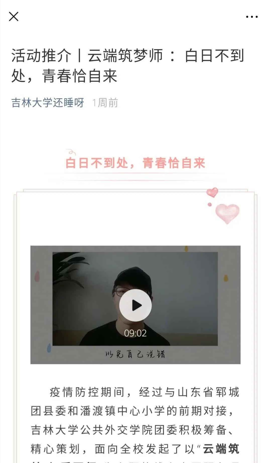 2019年吉林大学最佳志愿服务项目——云端筑梦·与爱同行