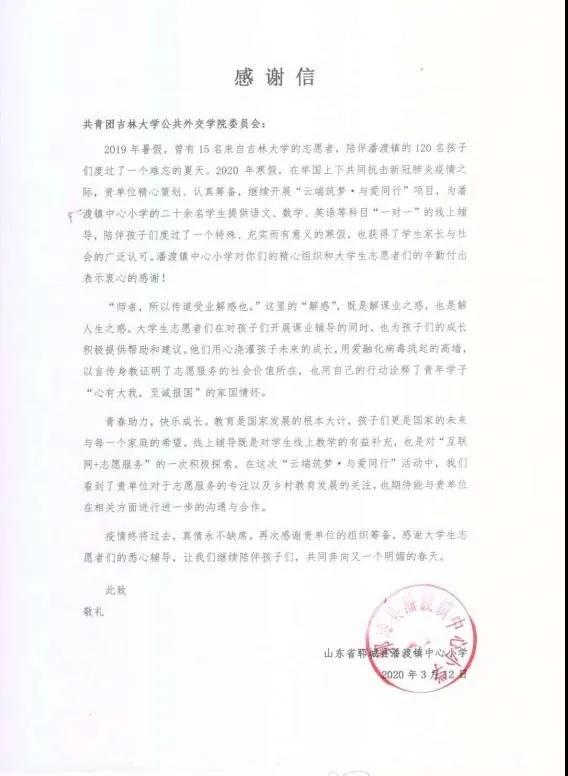 团委发来感谢信,对主办方的精心组织和志愿者们的辛勤付出表示感谢。“吉林大学还睡呀”微信公众平台也对本次活动进行了宣传推介。