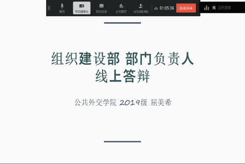 大会第二项是民主投票,参与会议的所有老师和同学根据竞选人的答辩情况进行民主投票。