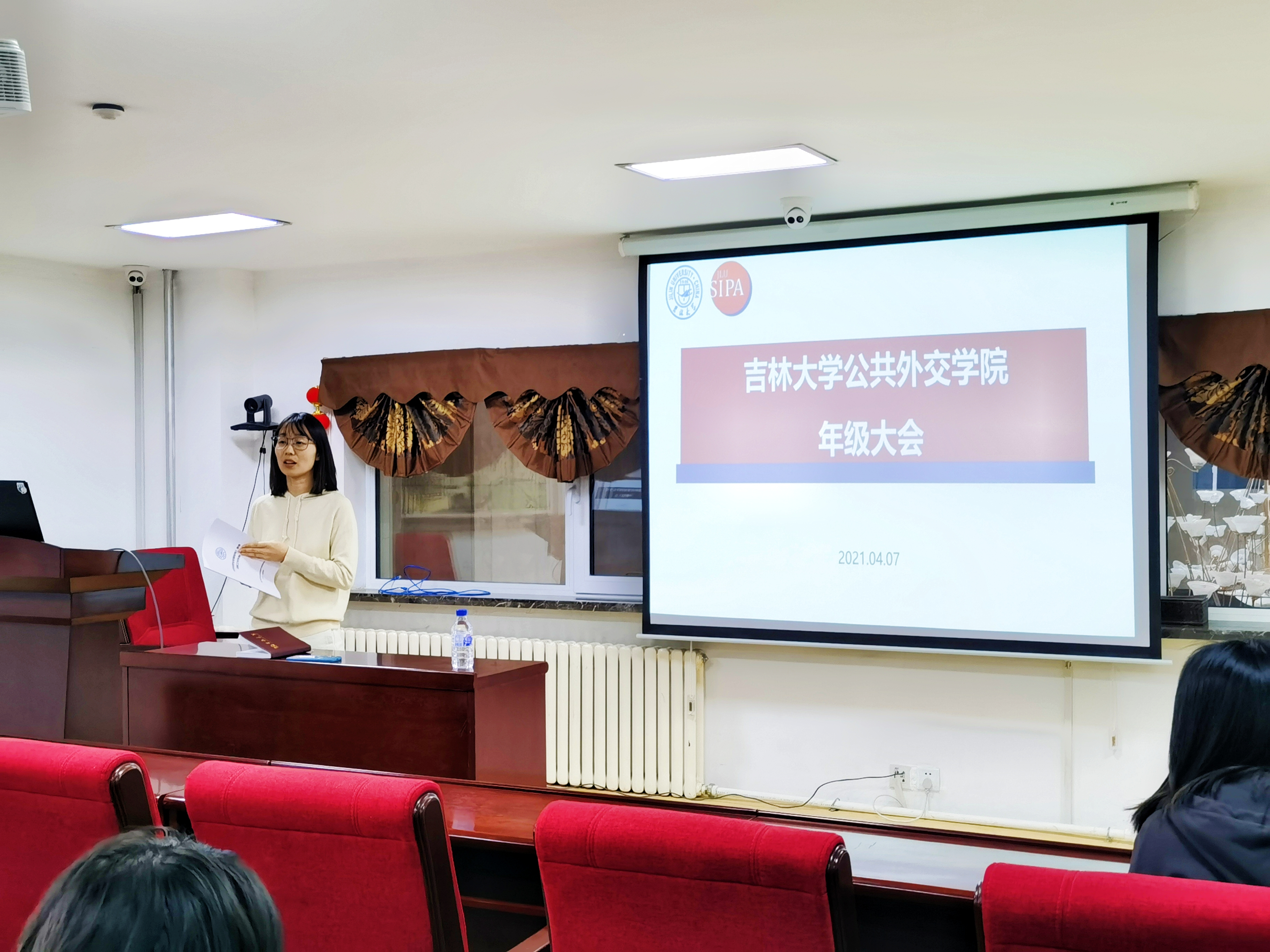 2020级本科生召开新学期年级大会。张淑艳、高梦鸽两位老师与全体2020级本科生共同参加会议。