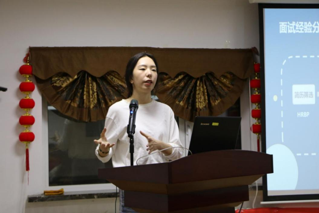 项露昕同学的就业经验分享主要围绕三个方面展开:前期就业准备,签约就业以及签约后的注意事项。她结合自身的就业经历,向同学们分享了自己求职就业的心得与体会,为同学们未来的就业选择提供了一定的借鉴。