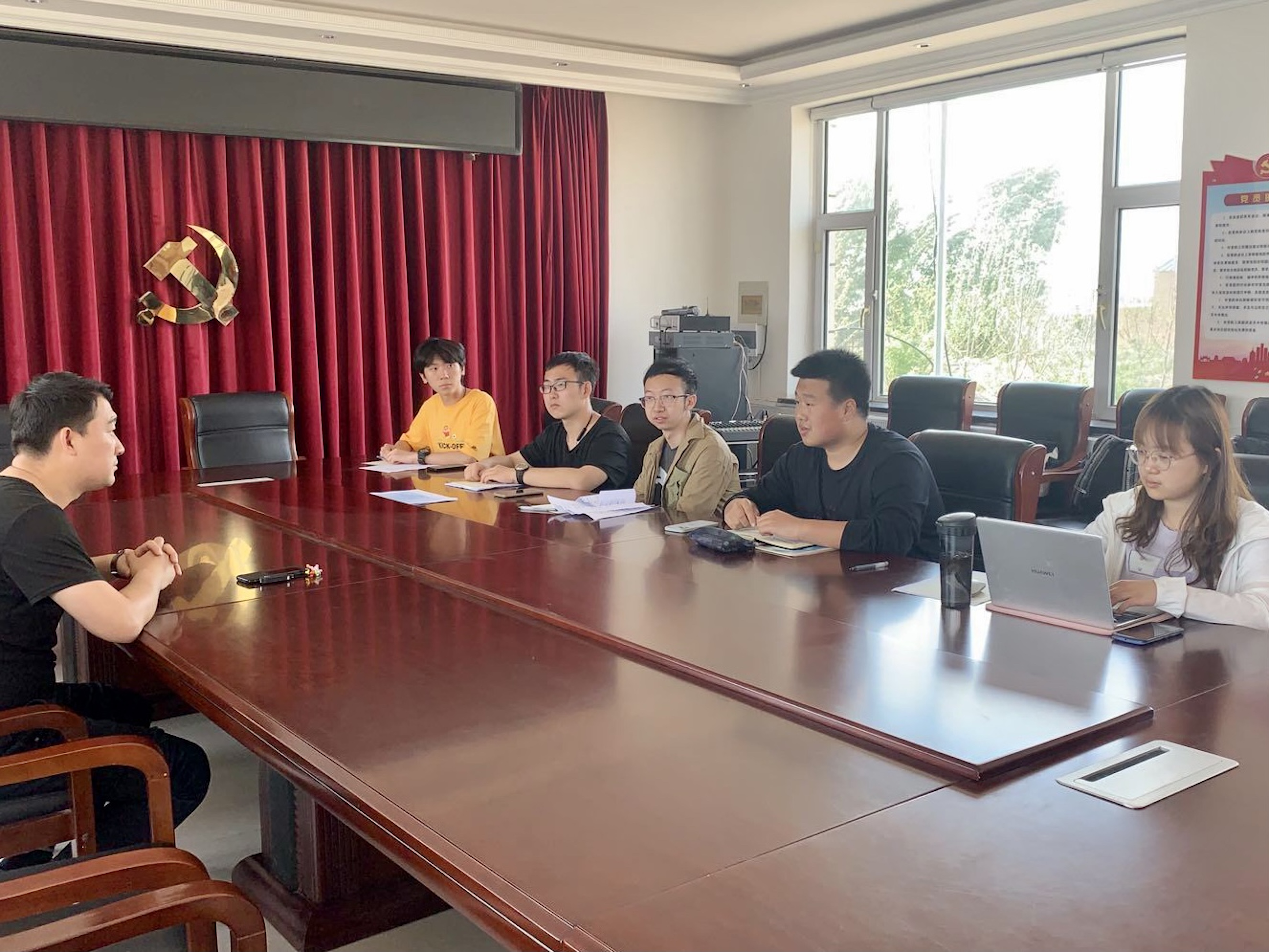 最后,实践团成员与吉林大学派驻边昭村第一书记王野老师在党群服务中心进行了深入沟通与交流。王野老师为实践团成员详细介绍了乡村振兴的时代背景、边昭村的实际情况,以及他和驻村工作队成员为助力边昭村全面脱贫所采取的举措,并勉励实践团成员不断提升自己的学习能力和综合素质,做对社会有意义的人,做对社会有意义的事。随后,实践团成员向王野老师赠送了吉林大学文创产品《吉大赋》,表达对以王野老师为代表的吉林大学扶贫干部的由衷敬佩与深深感谢。