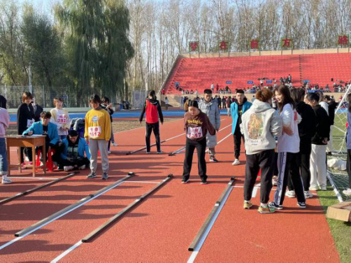 上午9:00进行的是立定跳远项目,汤果然与刘慧颖同学代表新生出战。她们蓄势而跃,随后轻盈落地,在空中划出长长弧线。