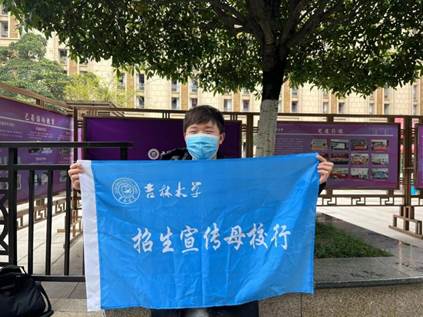 1月21日至2月20日,本科生陈信亚同学作为华东地区寒假招生宣讲队的队长,从“吉林大学是什么样的大学”“吉林大学的学习与生活”以及“吉林大学学生的未来与发展”三个层面为来自江苏省泰兴市第一高级中学的高三学子进行了全方位的讲解。此外,王梓铖、汤果然、葛赛特和陈若雪同学也分别浙江省乐清中学和浙江省东阳中学,采用线上形式进行宣讲,并通过发放宣传单、微信公众号推送、QQ群交流等方式扩大宣讲影响;张慕晗同学、汤果然同学和李书豪同学则分别前往南京市第九中学、江苏省江都中学及安徽省桐城中学的校园内进行宣讲。在宣讲过程中,同学们着重提到了吉林大学的特色学科建设,鼓励学弟学妹们积极报考,让学弟学妹们对吉大的认识更深一层次。
